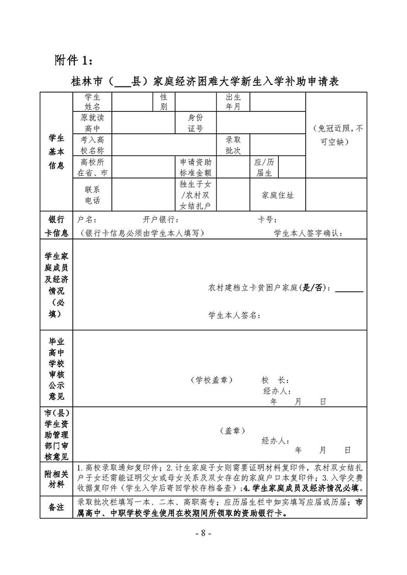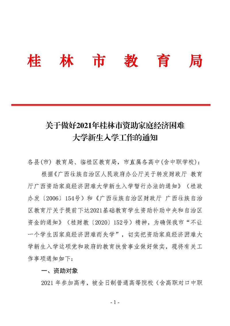 关于做好2021年桂林市资助家庭经济困难大学新生入学工作的通知