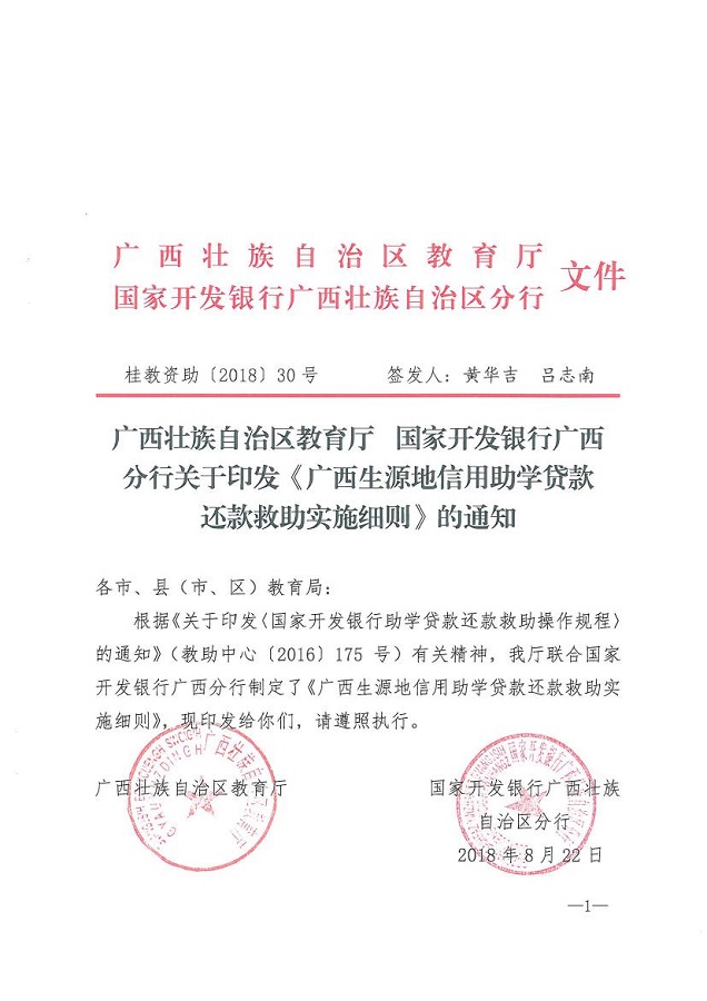桂教资助【2018】30号关于印发《广西生源地信用助学贷款还款救助实施细则》的通知
