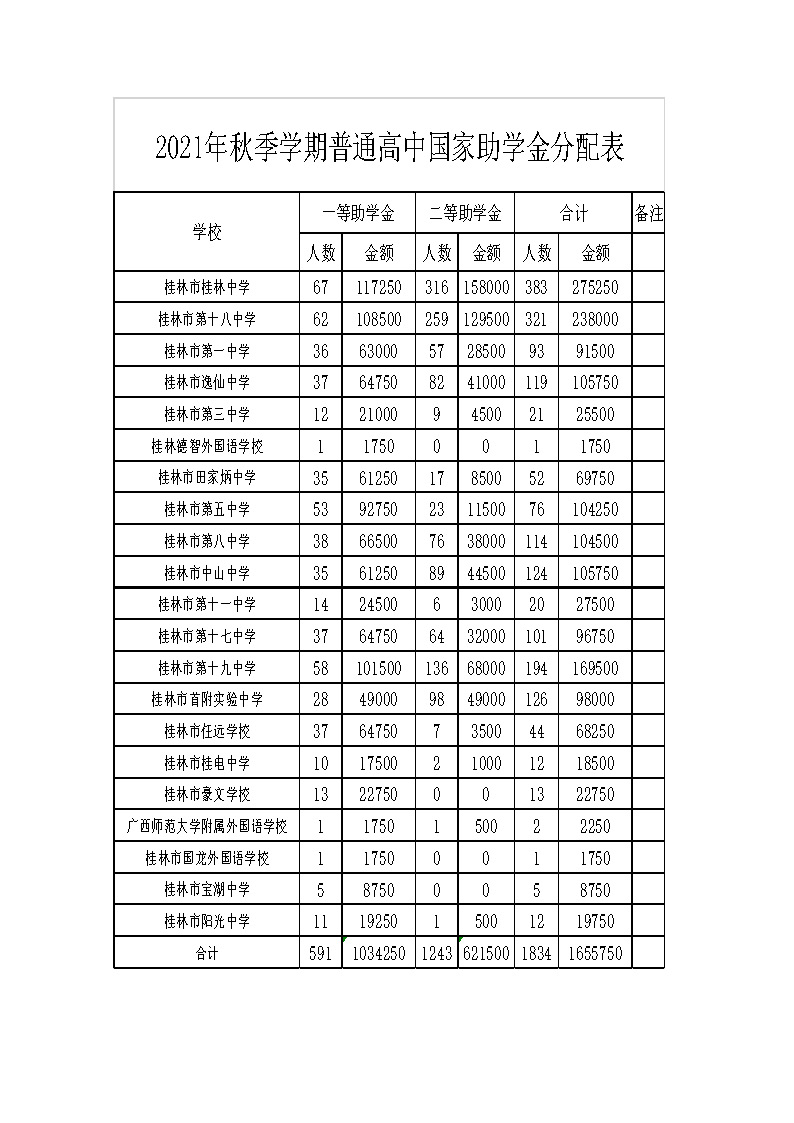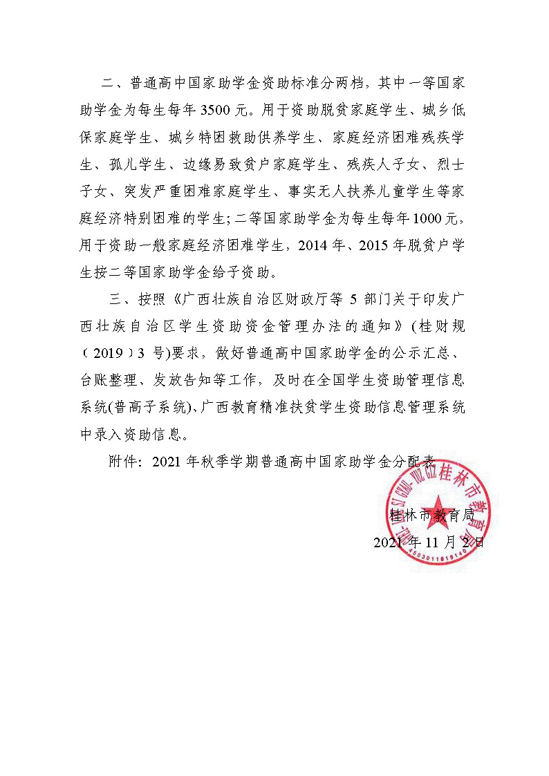 市教资助〔2021〕18号关于下达2021年秋季学期普通高中国家助学金的通知