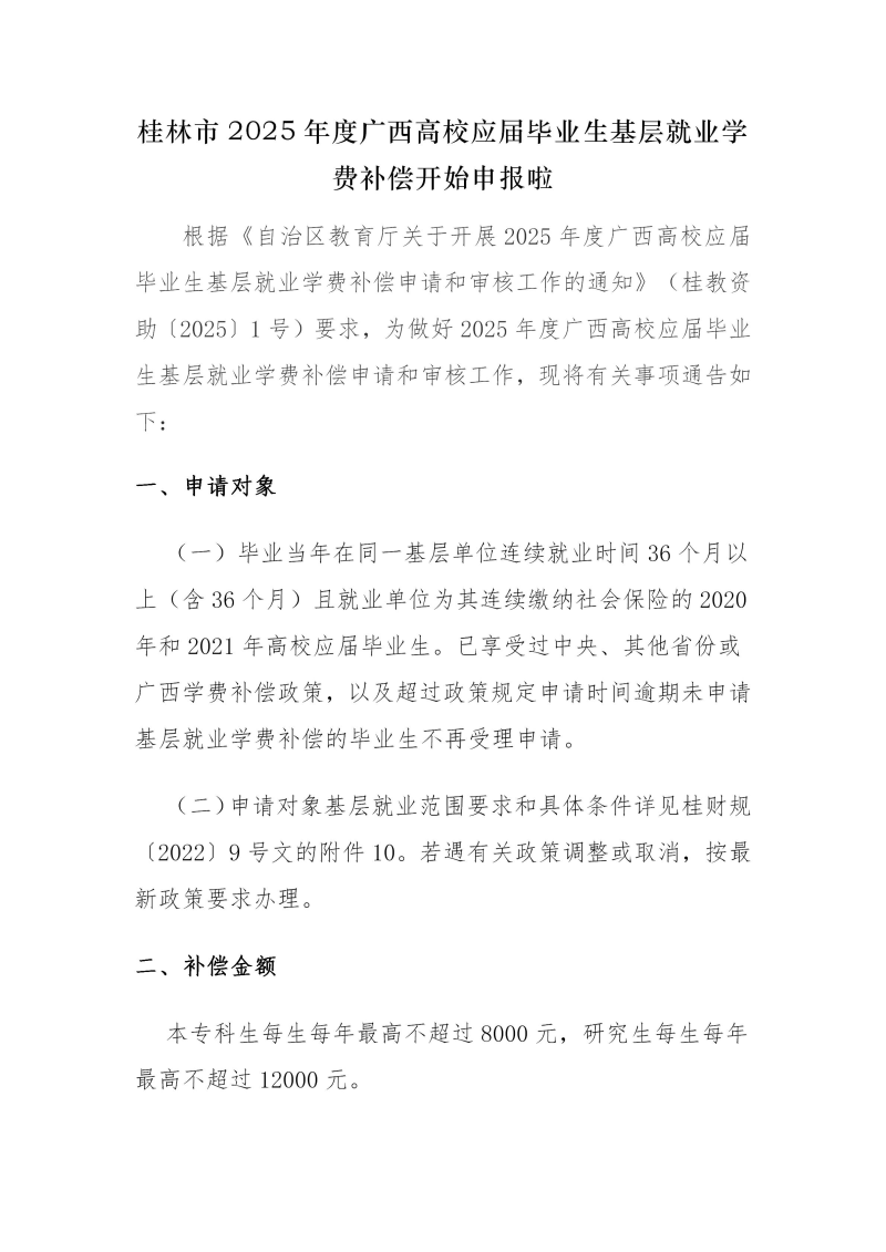 桂林市2025年度广西高校应届毕业生基层就业学费补偿开始申报啦