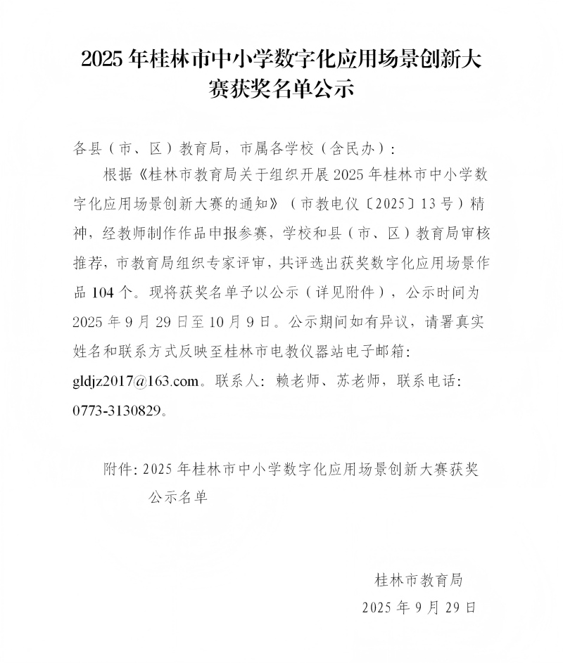 2025年桂林市中小学数字化应用场景创新大赛获奖名单公示