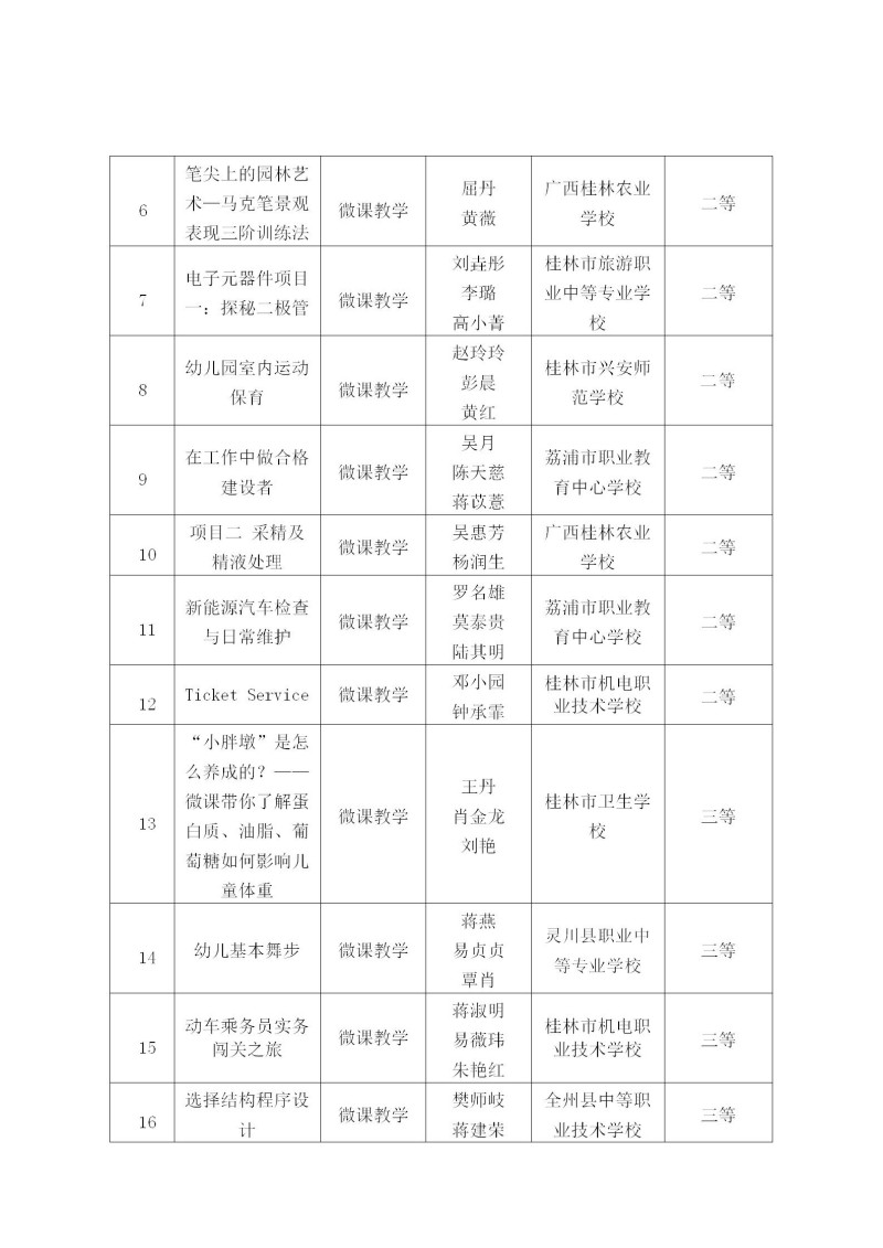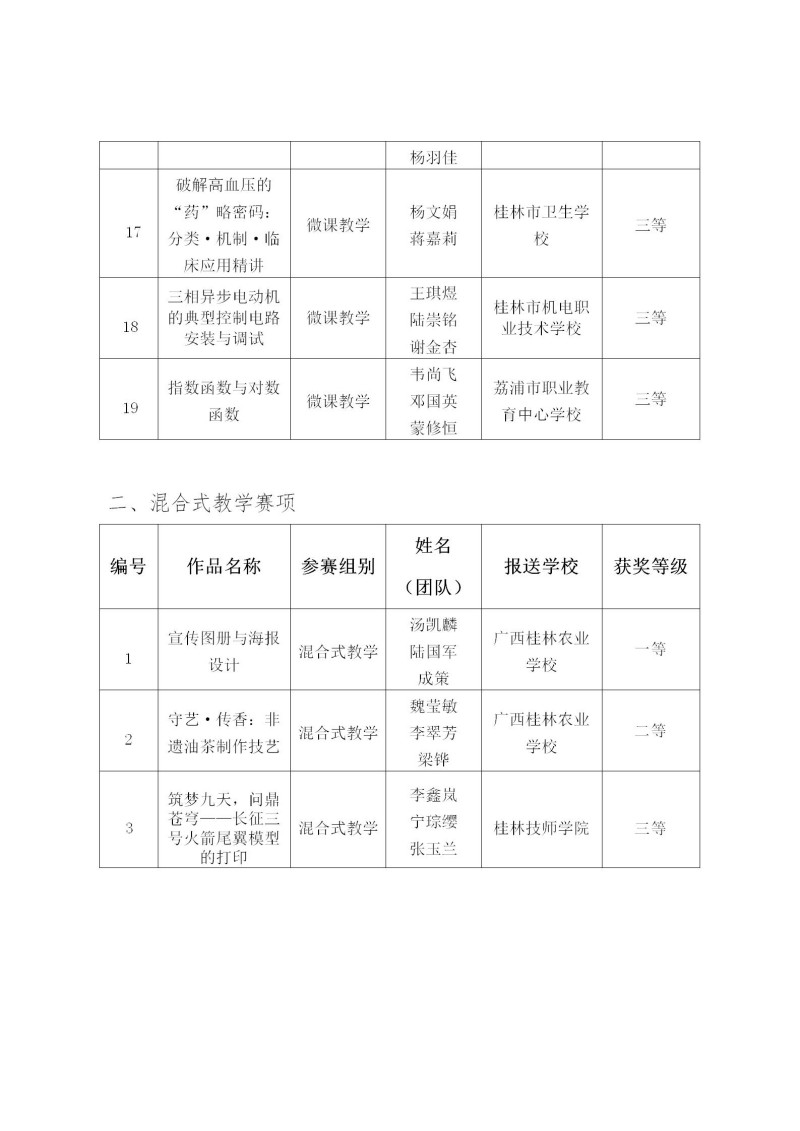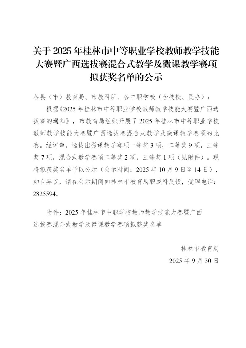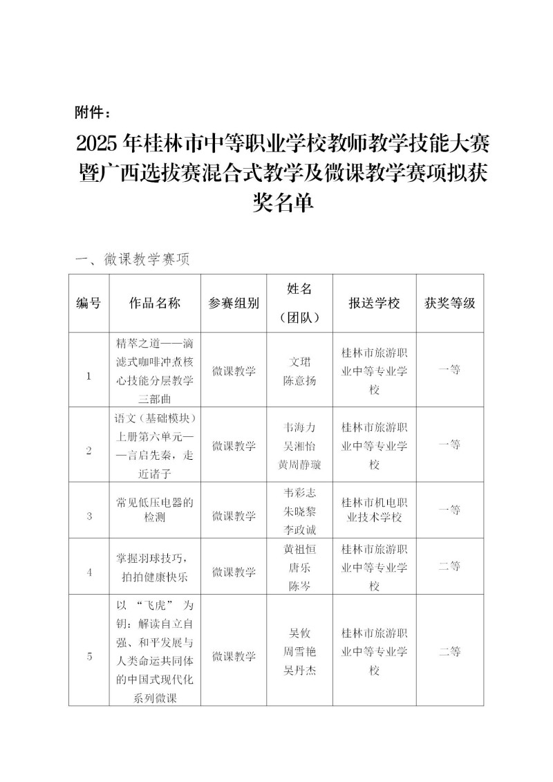 关于2025年桂林市中等职业学校教师教学技能大赛暨广西选拔赛混合式教学及微课教学赛项拟获奖名单的公示