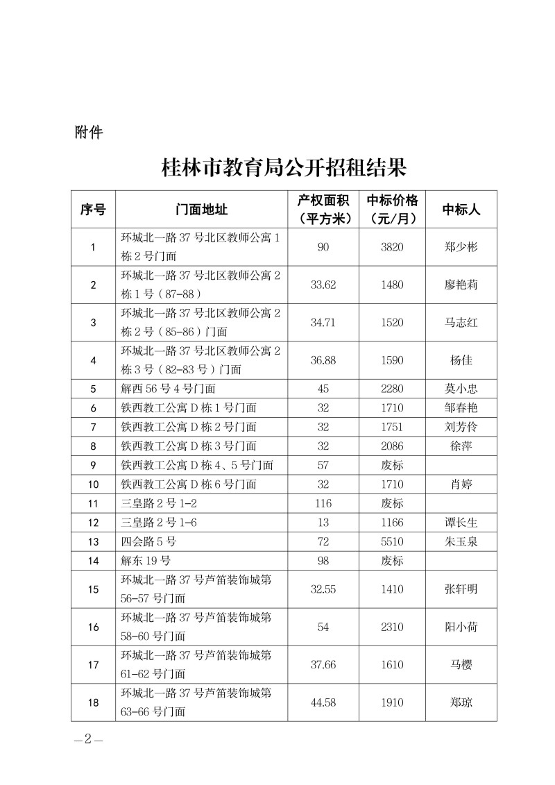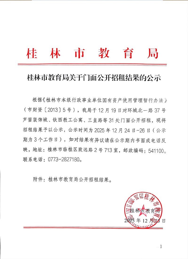 桂林市教育局关于门面公开招租结果的公示