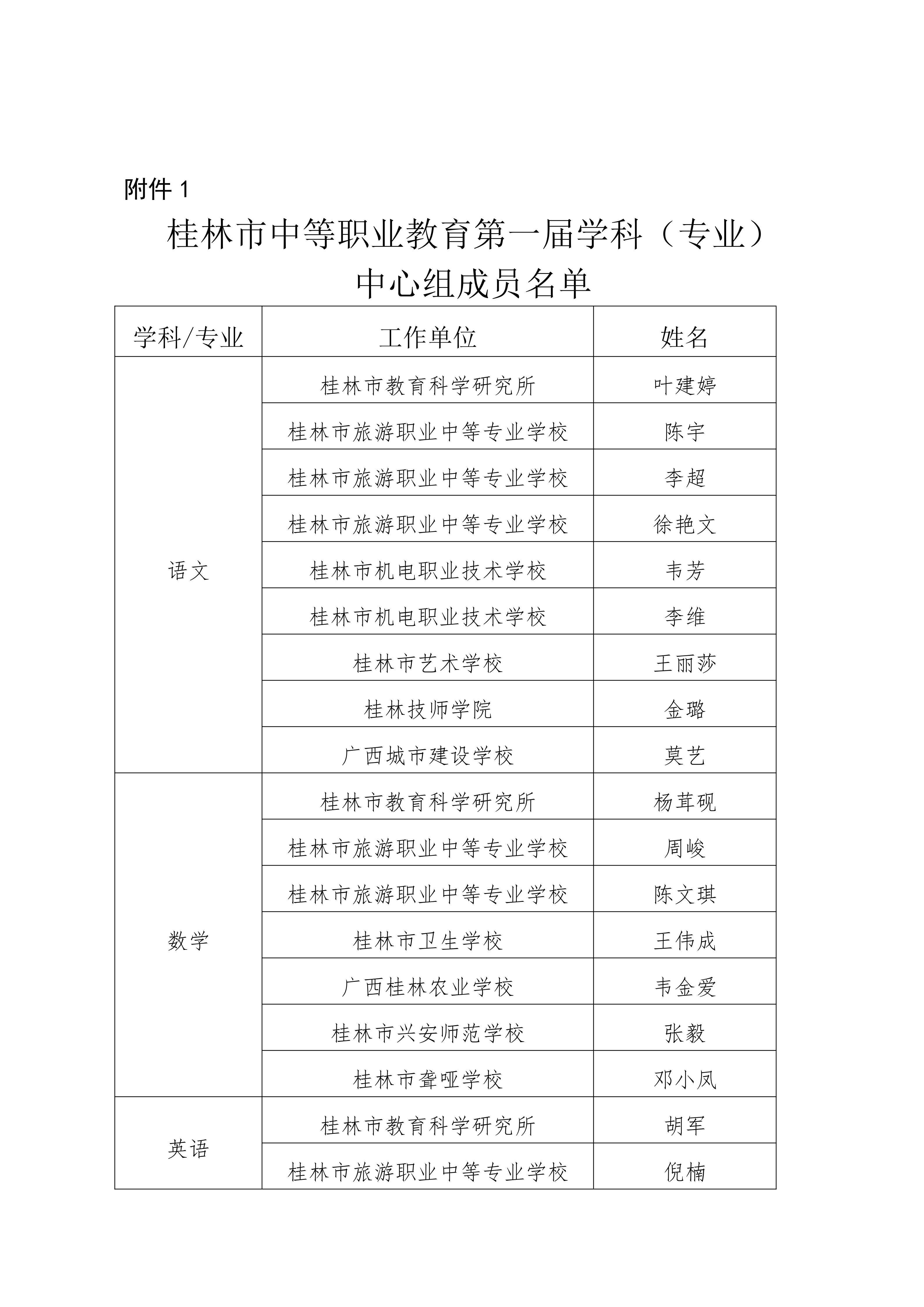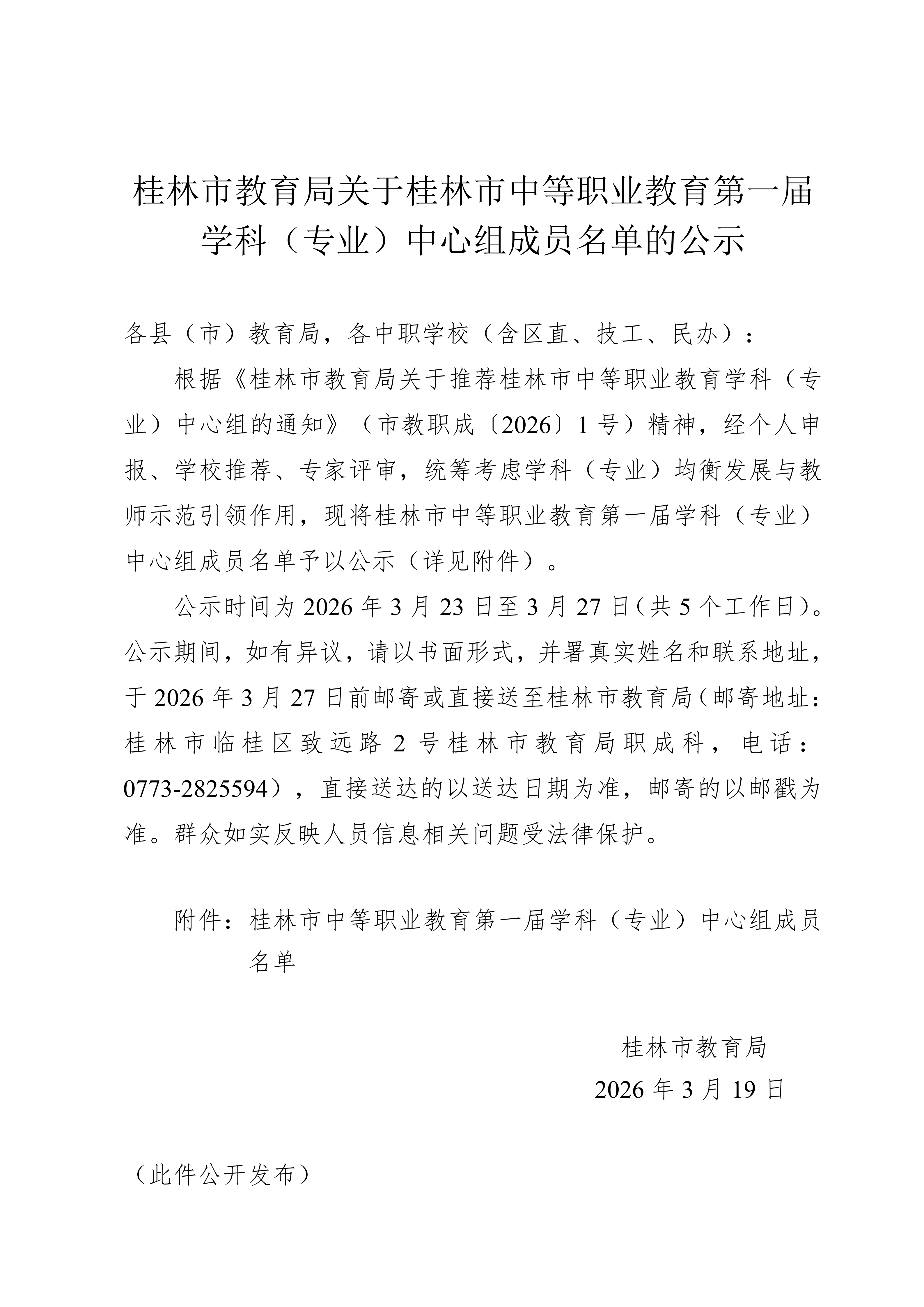 桂林市教育局关于桂林市中等职业教育第一届学科(专业)中心组成员名单的公示