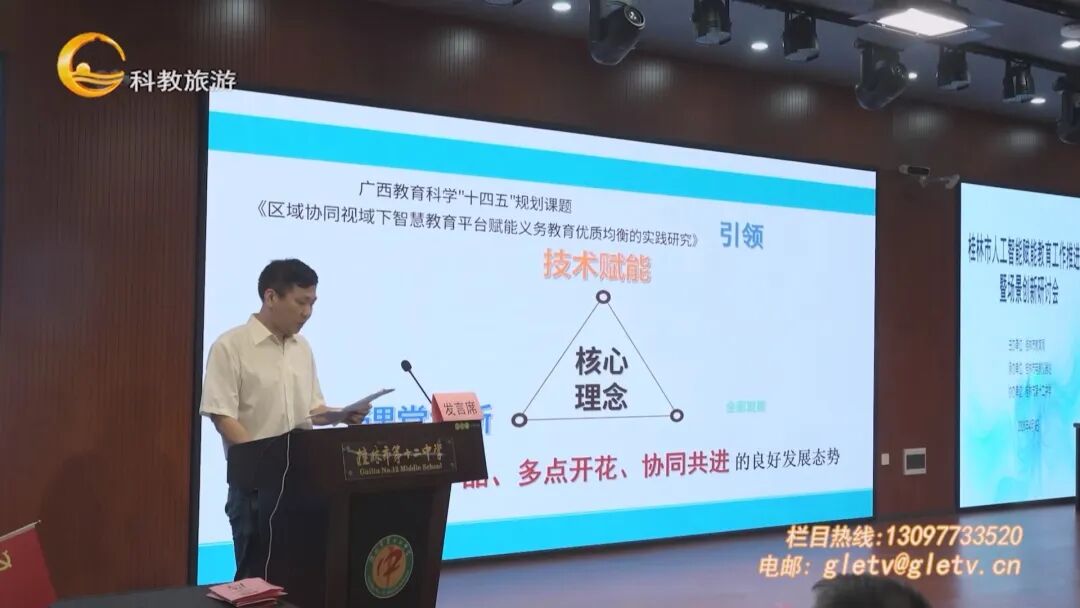 为推动教育数字化转型,落实“AI赋能教育提速工程”,4月9日,2026年桂林市人工智能赋能教育工作推进会暨场景创新研讨会在桂林市第十二中学召开。市教育局党组成员、副局长蒙亮出席会议并讲话。