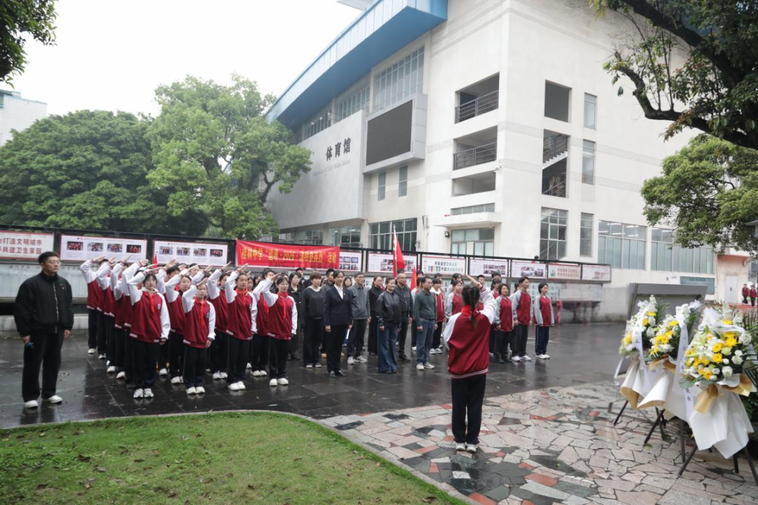 默哀结束后,参会师生举右拳庄严宣誓,铮铮誓言既是对英烈的承诺,更是桂中人勇担时代使命的决心。