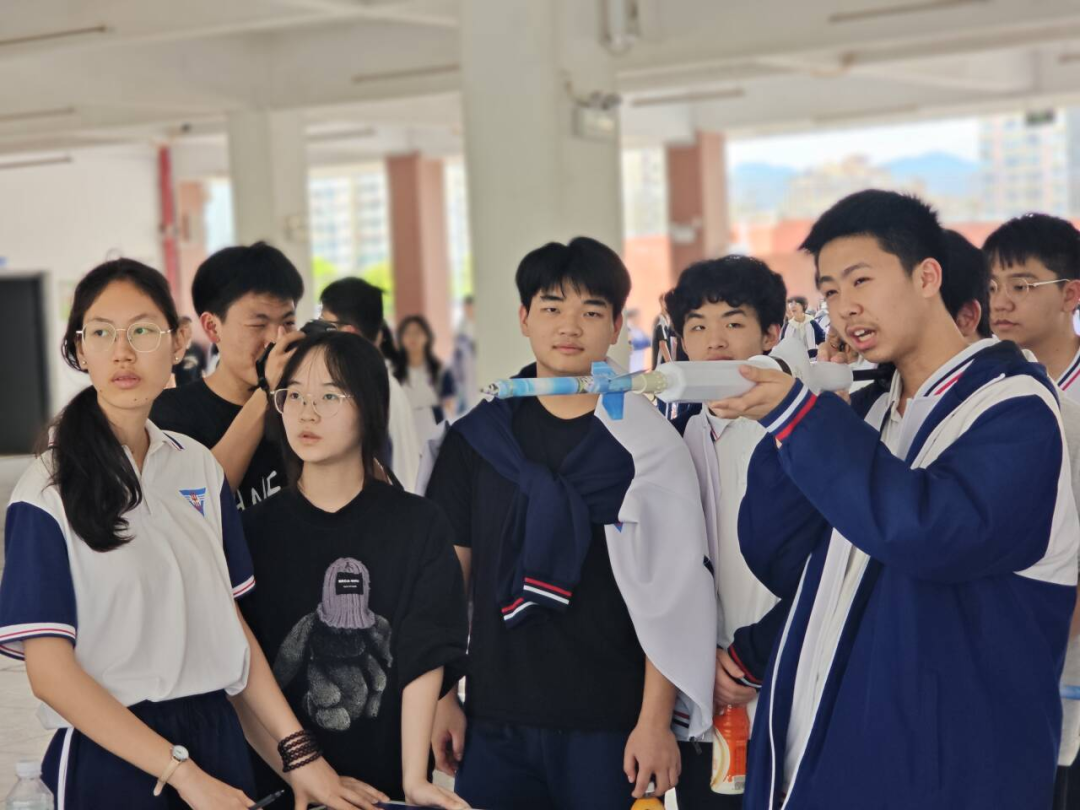 科技运动会设置气弓箭、纸青蛙跳远两个特色项目。气弓箭项目考验团队配合与操控,纸青蛙跳远比拼结构设计与力学应用,同学们以严谨的态度、创新的思维,展现了中山学子的科学素养与实践能力。