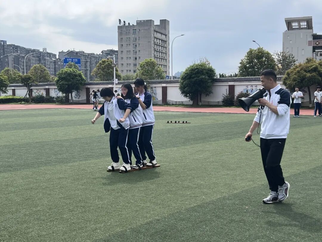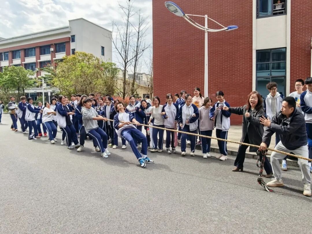 在民族传统体育比赛中,同学们体验了拔河、三人板鞋、跳长绳三个集体项目。同学们凝心聚力、默契配合,展现了集体荣誉感与民族传统体育的魅力。