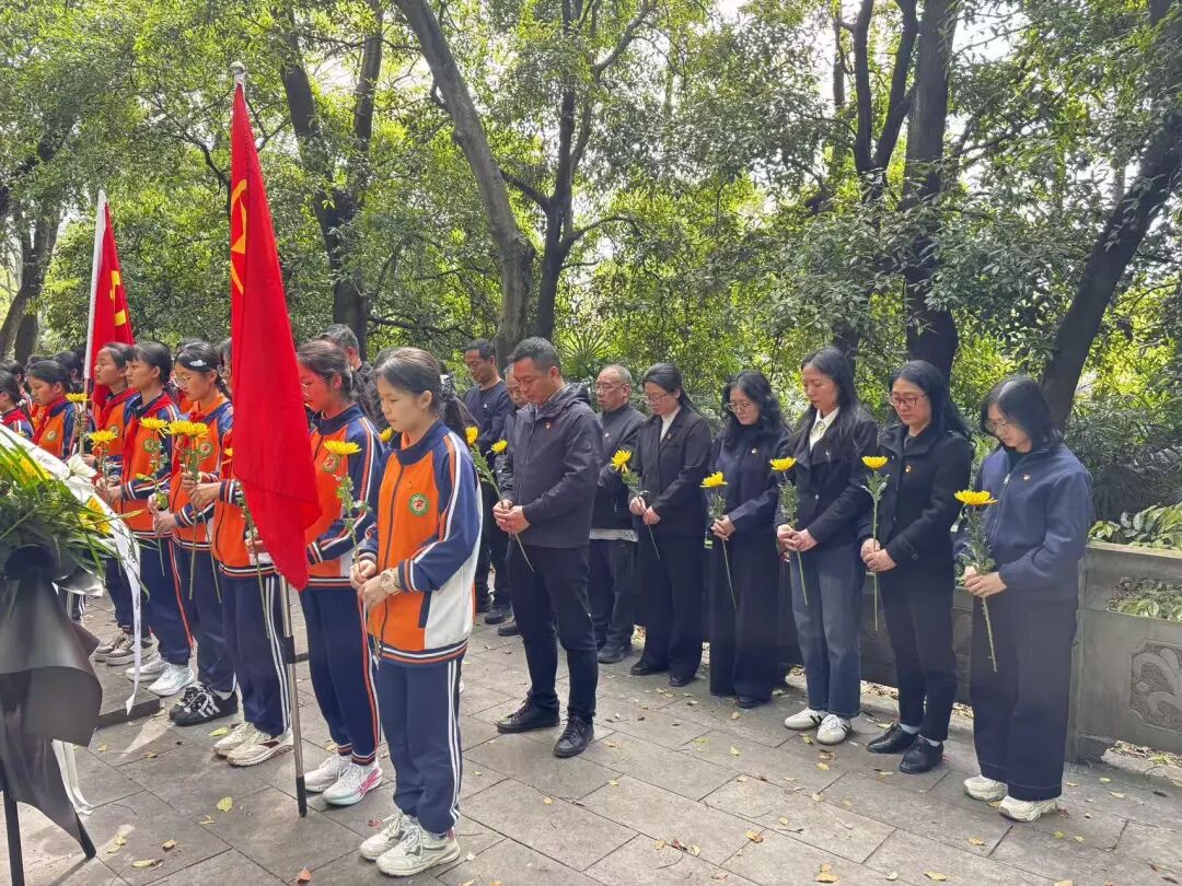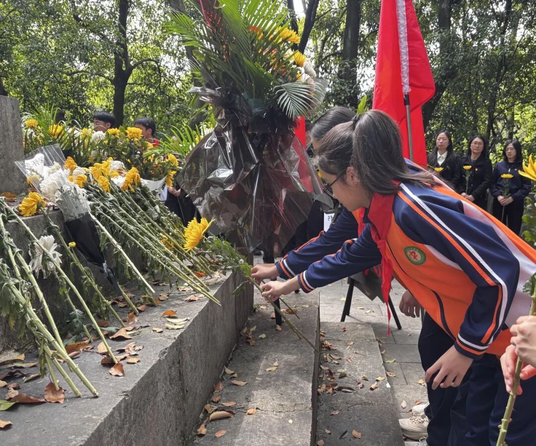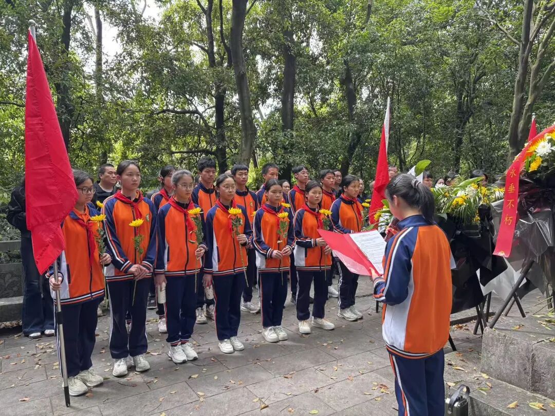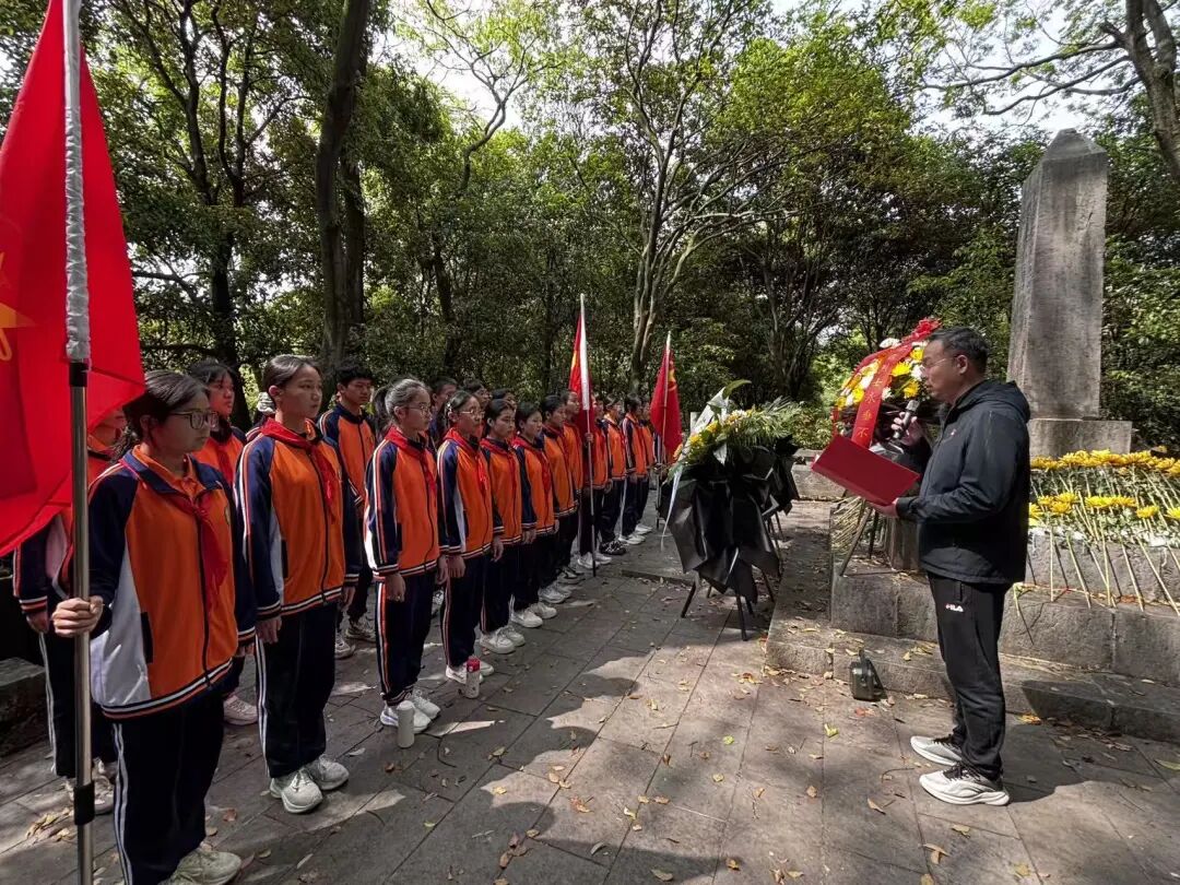 全体师生举起右拳,庄严宣誓,表达继承先烈遗志、矢志报效祖国的坚定决心。师生们依次向烈士纪念碑敬献花圈,并缓缓绕行纪念碑一周,每一步都饱含对英烈的敬仰与追思。