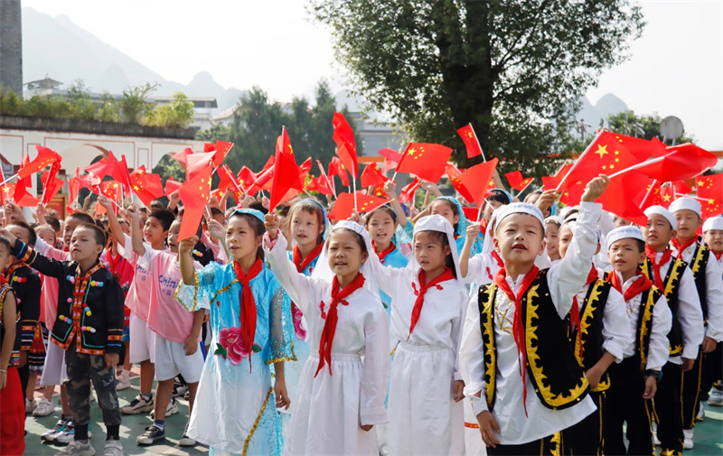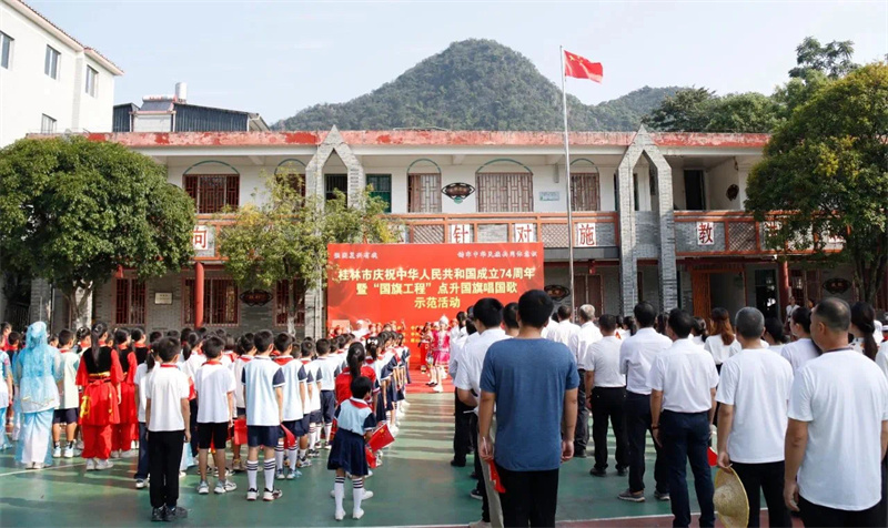 9月28日,雁山区在草坪回族乡草坪回族希望小学开展桂林市庆祝中华人民共和国成立74周年暨“国旗工程”点升国旗唱国歌示范活动,大力培育和弘扬爱国主义精神,激发各族干部群众爱国情怀和爱国热情。