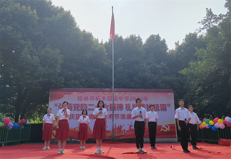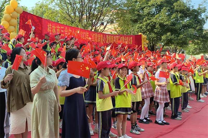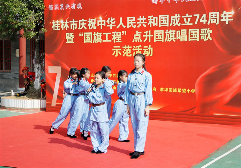 此次活动由中共桂林市委员会宣传部主办,中共雁山区委宣传部承办,草坪回族乡人民政府、草坪回族希望小学协办。活动现场,近300名各族党员干部、草坪回族希望小学师生代表共升国旗、共唱国歌,草坪回族希望小学学生带来舞蹈、诗朗诵等文艺表演,用自己的歌声和舞蹈表达了对祖国的热爱和真挚祝福。
