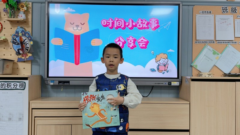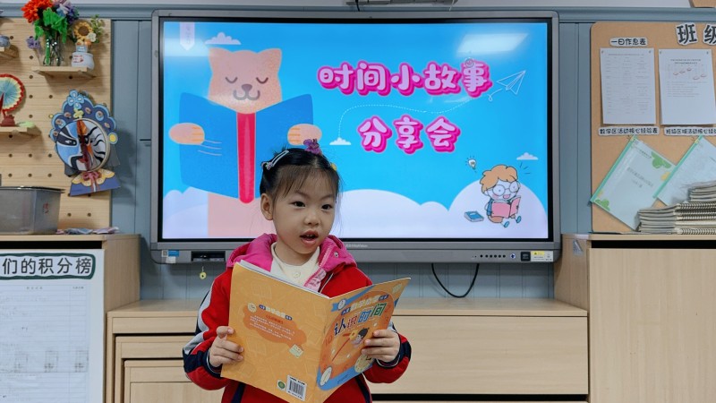 语言区的绘本阅读让孩子们对“时间”的兴趣愈发浓厚,在一本本故事书的熏陶下,“时间小故事分享会”也正式拉开帷幕。为了这场分享,每位孩子都做了十足准备,他们把台词记在小脑袋里反复练习,故事主题紧紧围绕“时间”展开。分享现场,孩子们自信地站上台,用稚嫩却坚定的声音绘声绘色地讲述:有探索时间本质的《时间是什么》,有介绍时钟奥秘的《时钟一家来做客》,有传递耐心等待的《等等和钟表花》,还有提醒大家别慌张的《慌张先生》……生动的情节瞬间吸引了台下所有小观众。