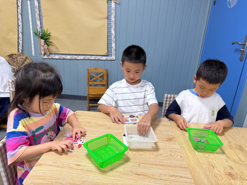 为帮助孩子们更熟练、自信地运用整点和半点知识,老师还将课堂内容延伸至区域游戏中。数学区里,孩子们拿着标有不同时间的卡片,对照着钟面认真摆弄指针或进行配对,遇到不确定的地方就互相讨论或请教老师,在反复操作中进一步夯实了对时间的认知,运用知识的底气也越来越足。