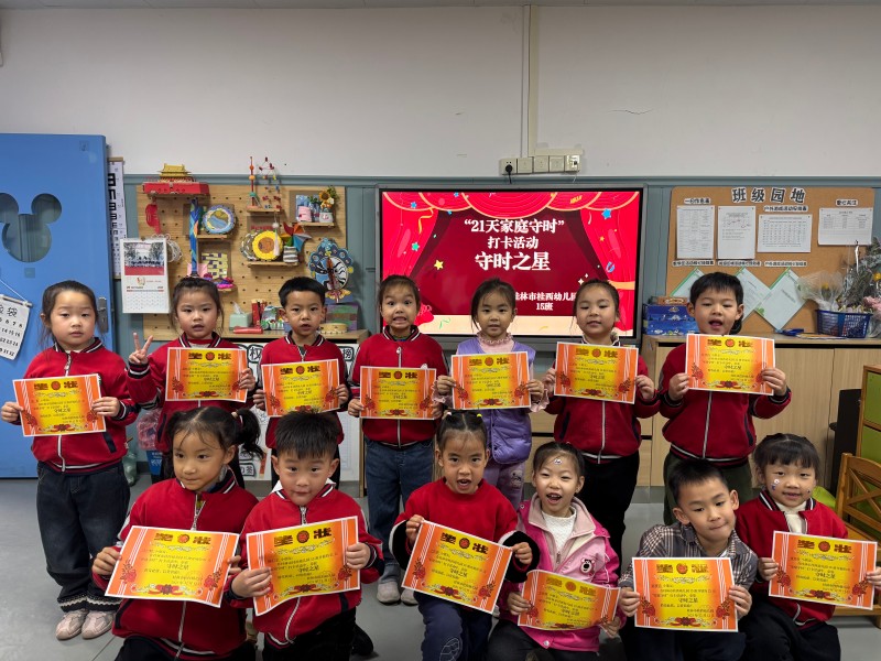 从家长们每天在班级群分享的打卡内容里,教师看到孩子们在家主动按时起床、乖乖按时吃饭的成长瞬间,这些场景与幼儿园的签到、规划活动形成呼应,让“守时”从课堂延伸到生活。颁奖仪式上孩子们捧着“守时之星”奖状的笑脸,是家园合力最美的成果。习惯养成需长期浸润,只有家园始终同频,幼儿园传递方法、家庭提供土壤,才能让守时的种子真正扎根,让孩子在一致的教育氛围中,成长为自律的“时间小主人”。