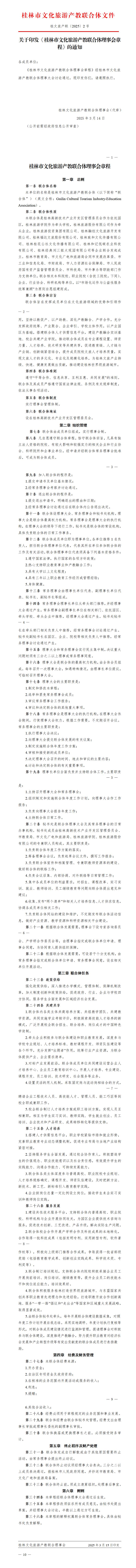 关于印发《桂林市文化旅游产教联合体理事会章程》的通知
