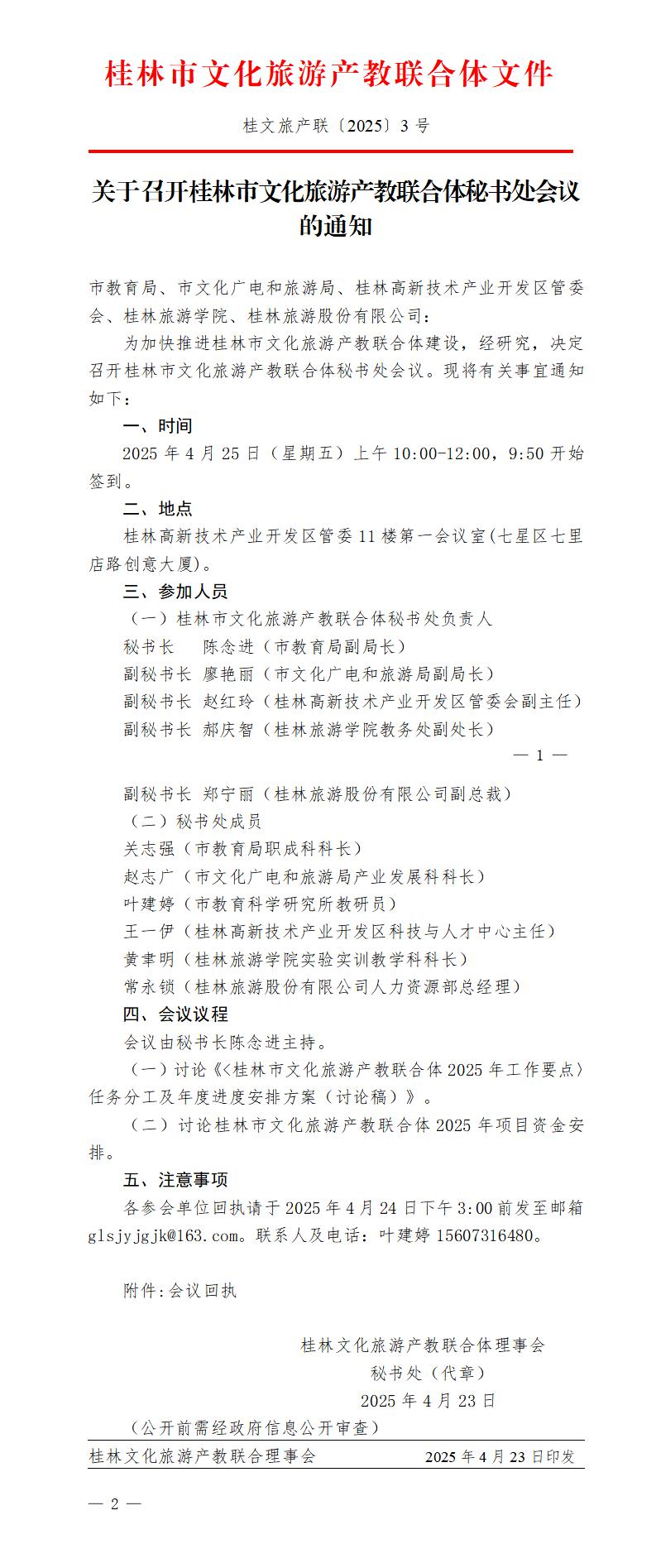 关于召开桂林市文化旅游产教联合体秘书处会议的通知