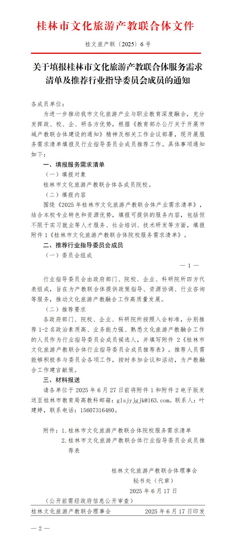 关于填报桂林市文化旅游产教联合体服务需求清单及推荐行业指导委员会成员的通知