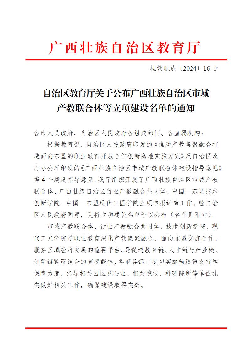 产教联合体等立项建设名单的通知