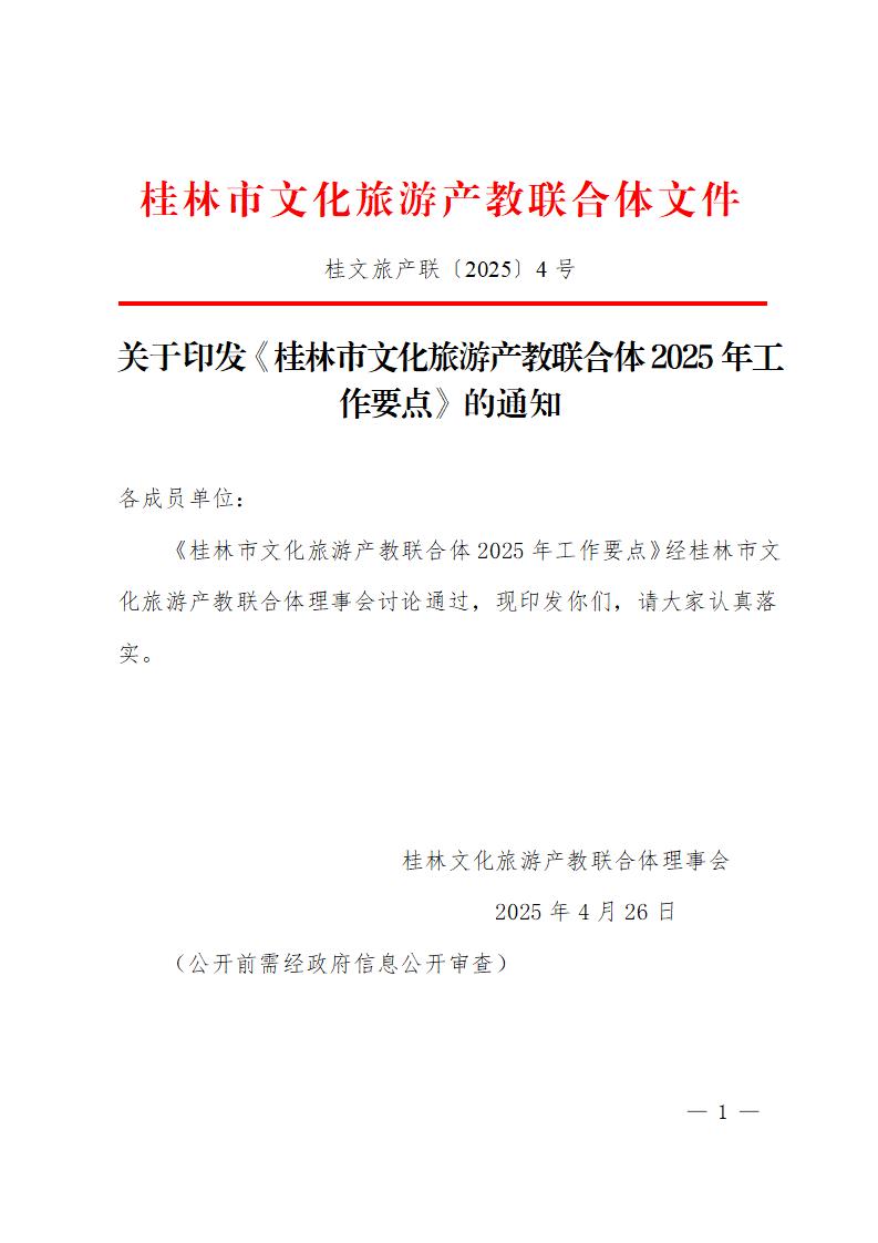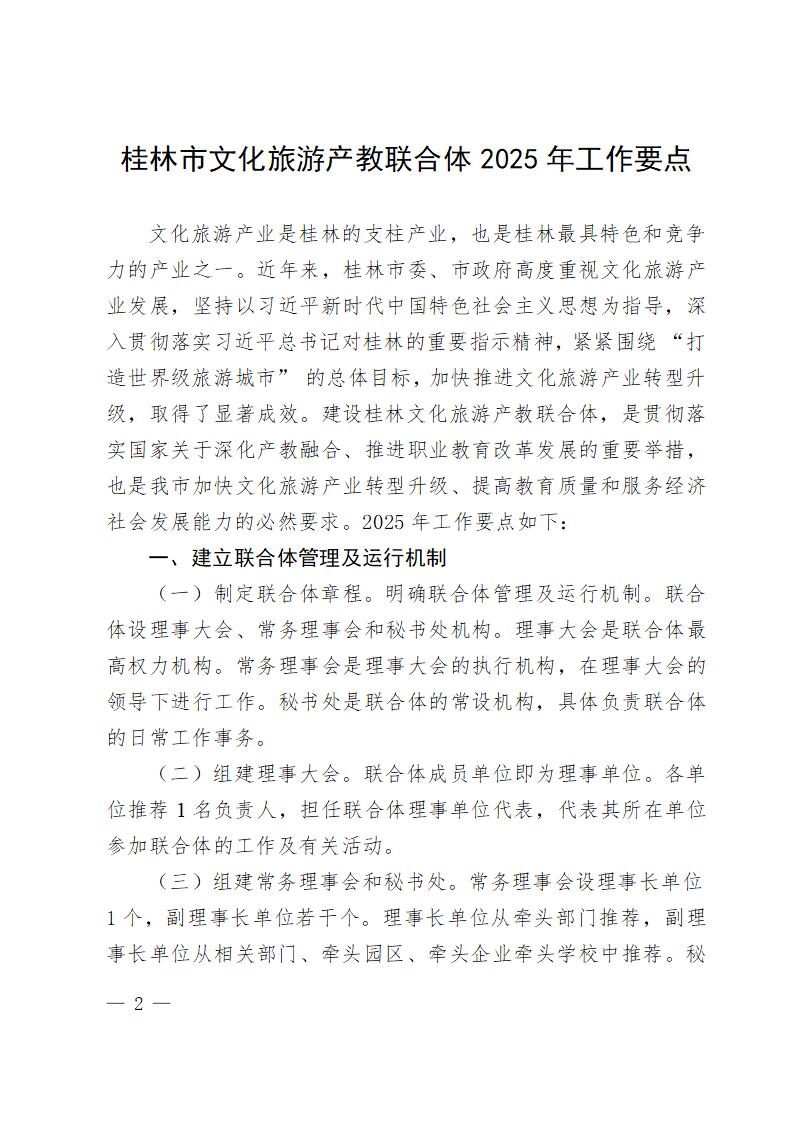 桂林文旅联合体〔2025〕4号关于印发《桂林市文化旅游产教联合体2025年工作要点》的通知