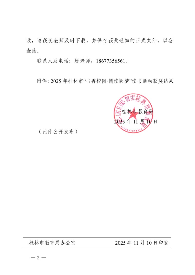 市教电仪〔2025〕24 号 桂林市教育局关于公布2025年桂林市“书香校园·阅读圆梦”读书活动获奖结果的通知