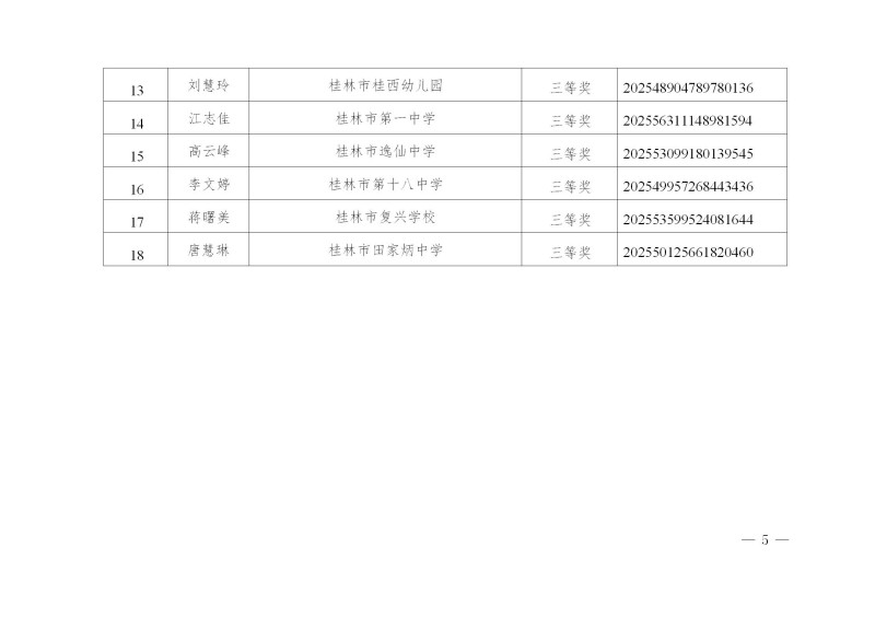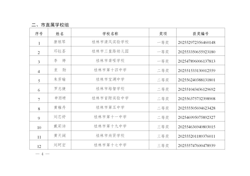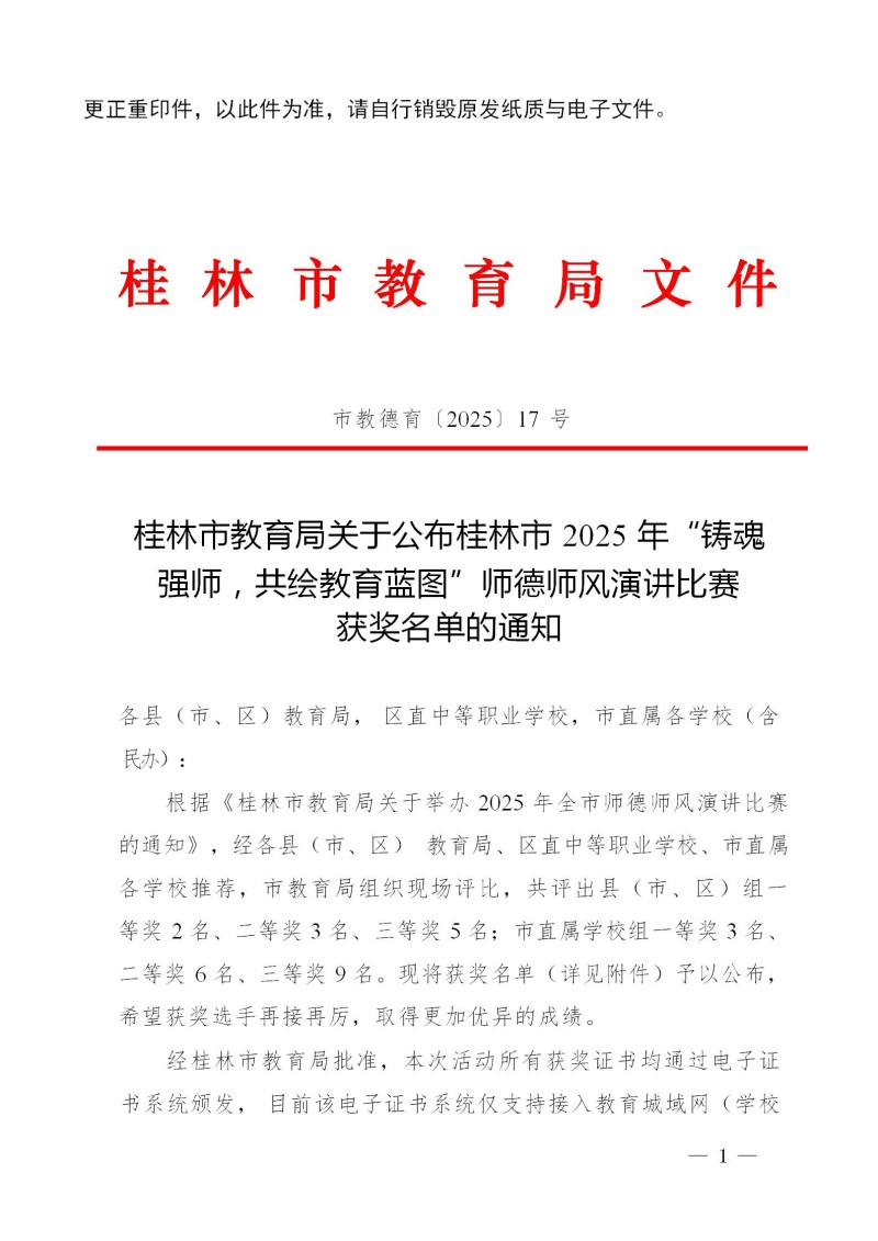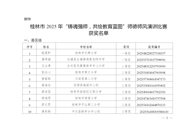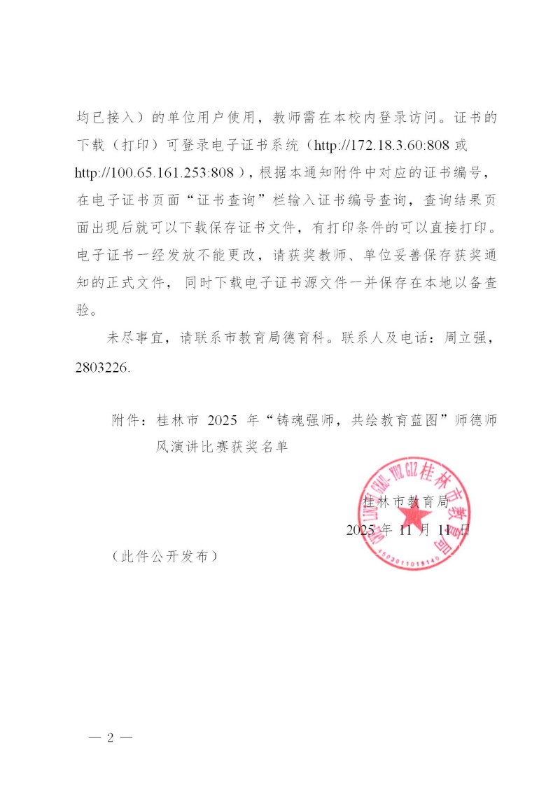 市教德育〔2025〕17 号桂林市教育局关于公布桂林市 2025 年“铸魂强师 共绘教育蓝图”师德师风演讲比赛获奖名单的通知