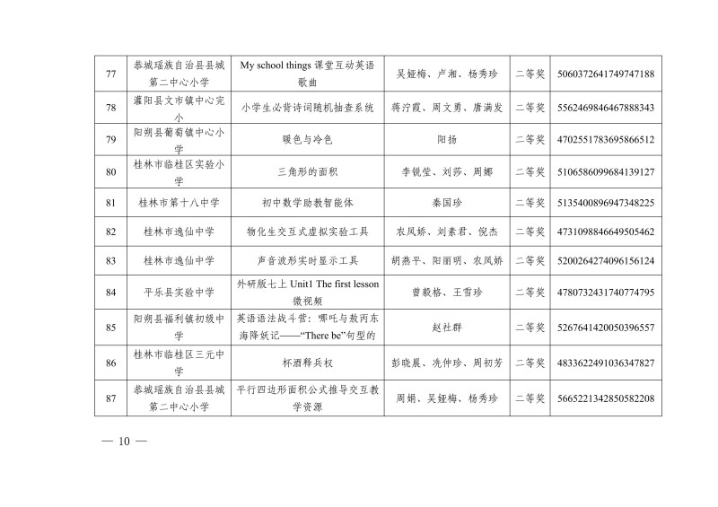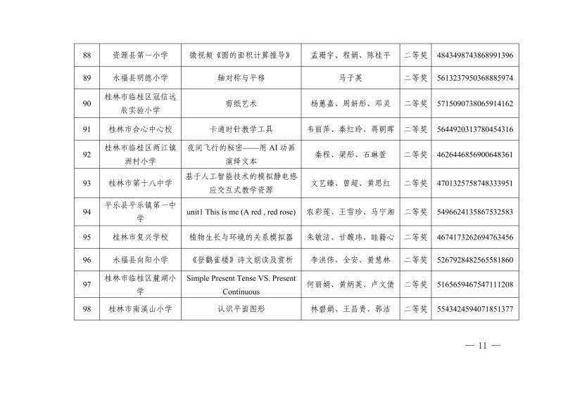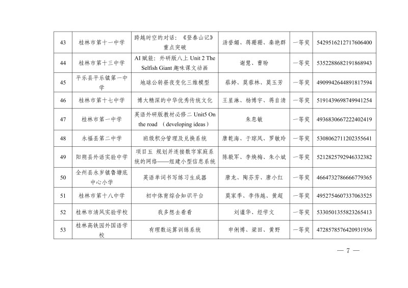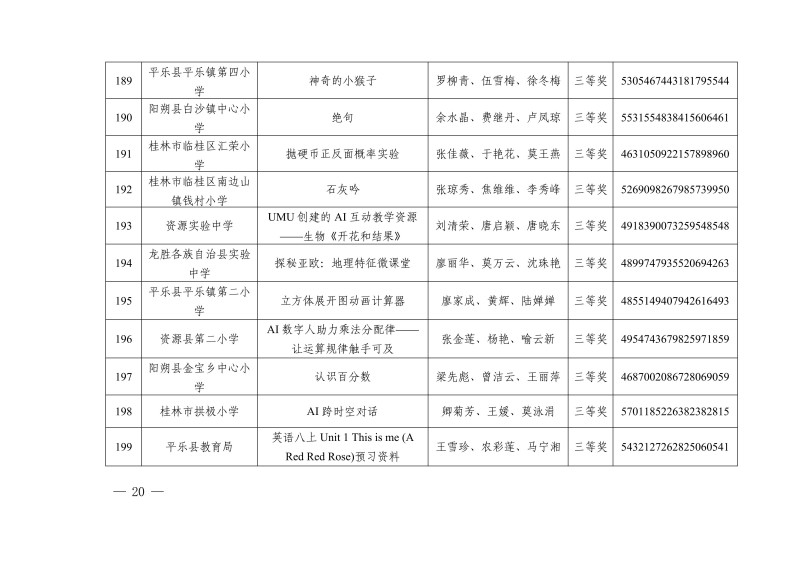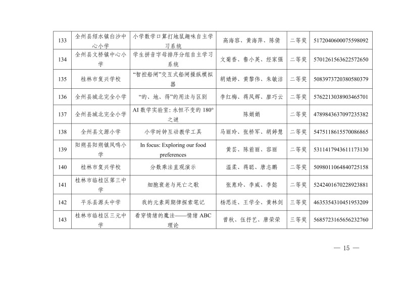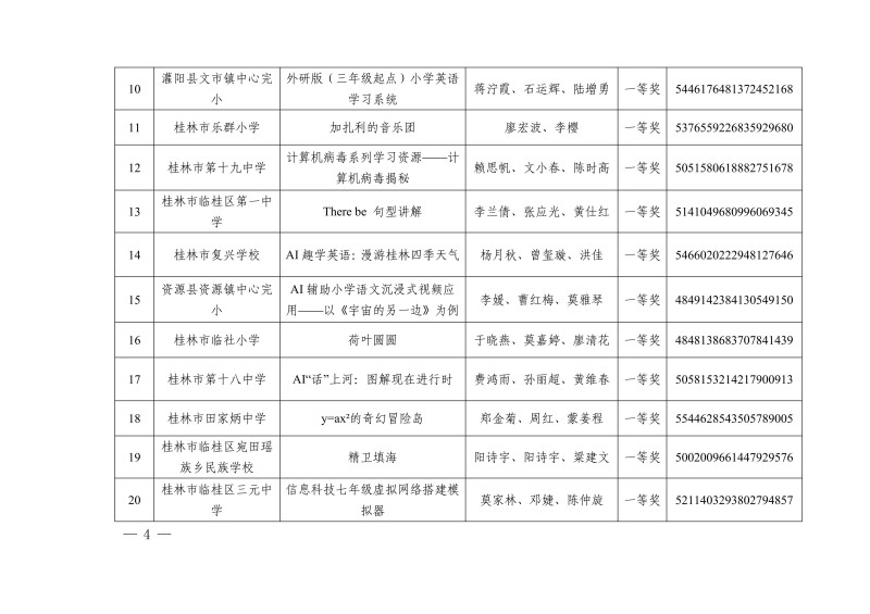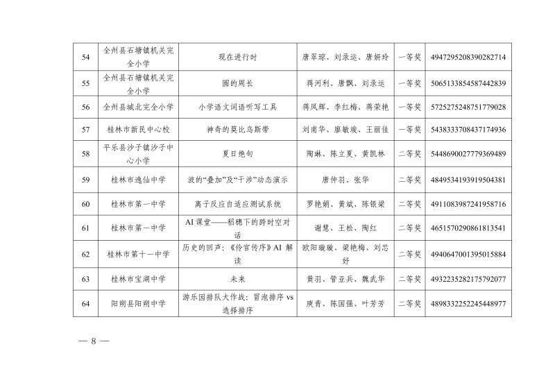 市教电仪〔2025〕25 号 桂林市教育局关于公布2025年人工智能赋能教育教学作品征集评选活动教学资源获奖名单的通知