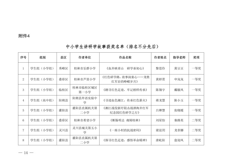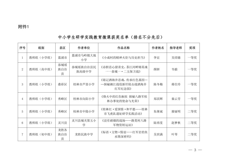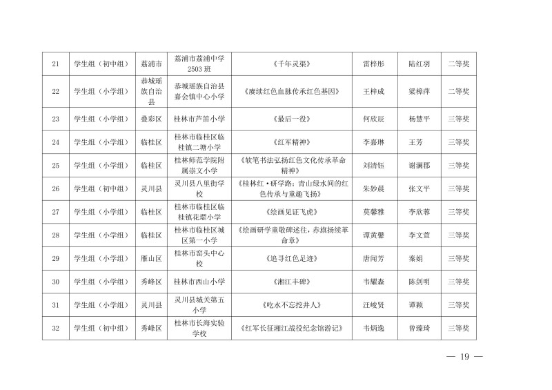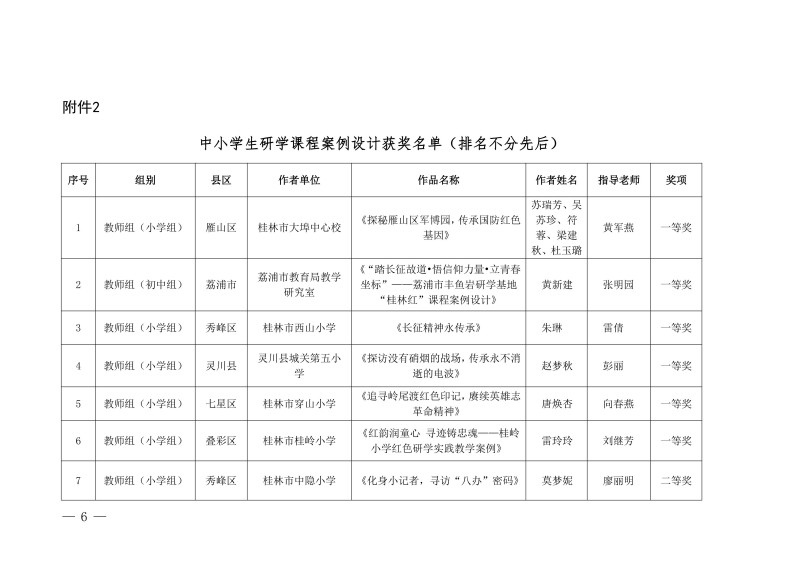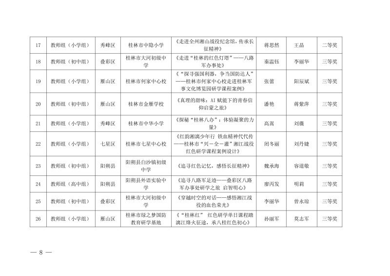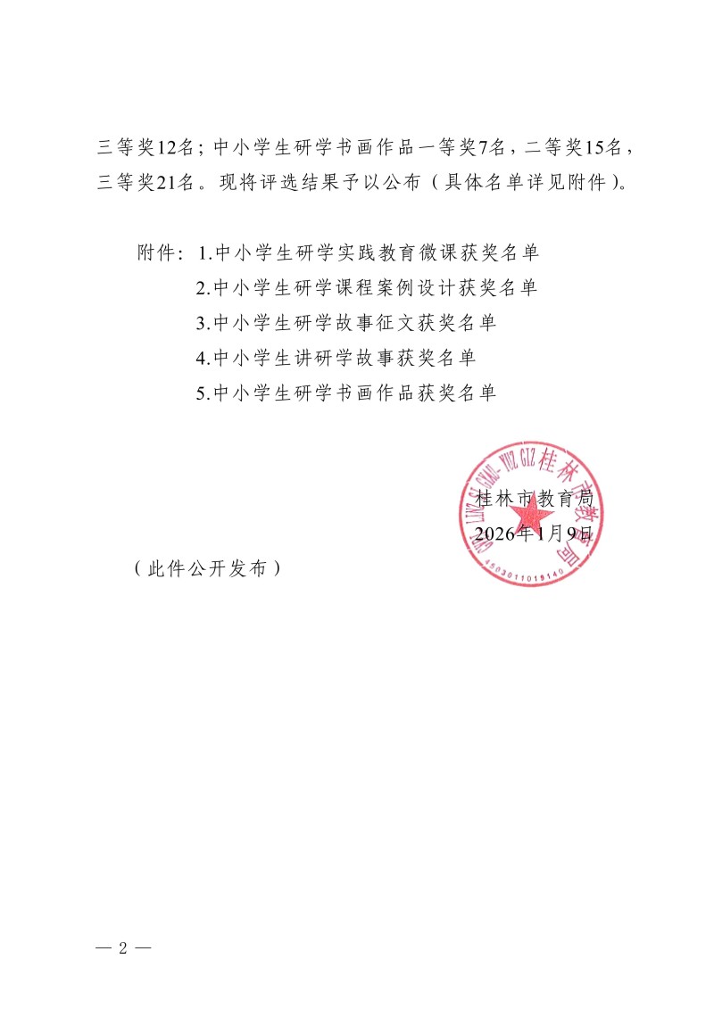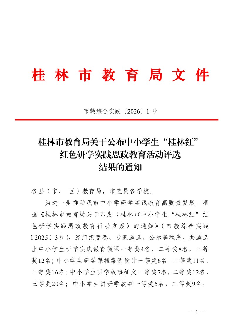 市教综合实践〔2026〕1号桂林市教育局关于公布中小学生“桂林红” 红色研学实践思政教育活动评选结果的通知