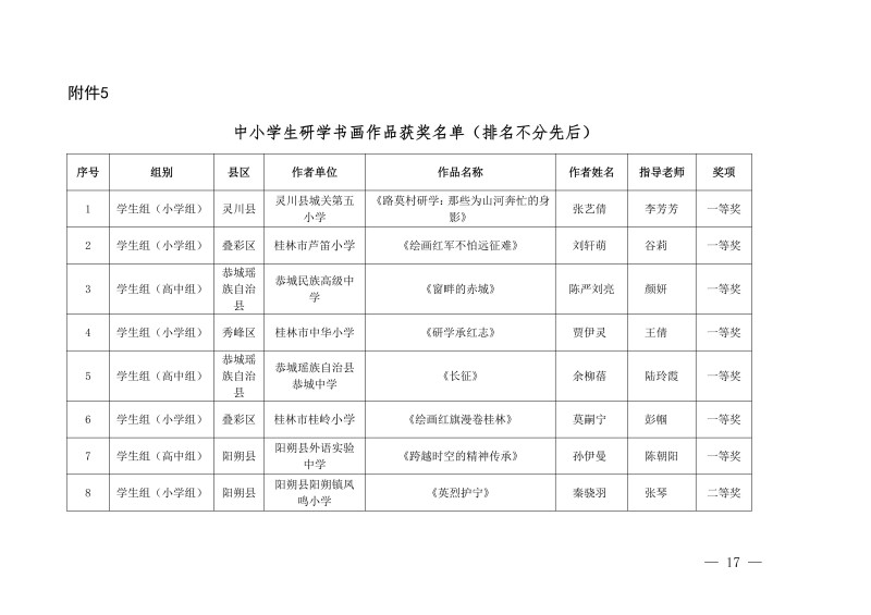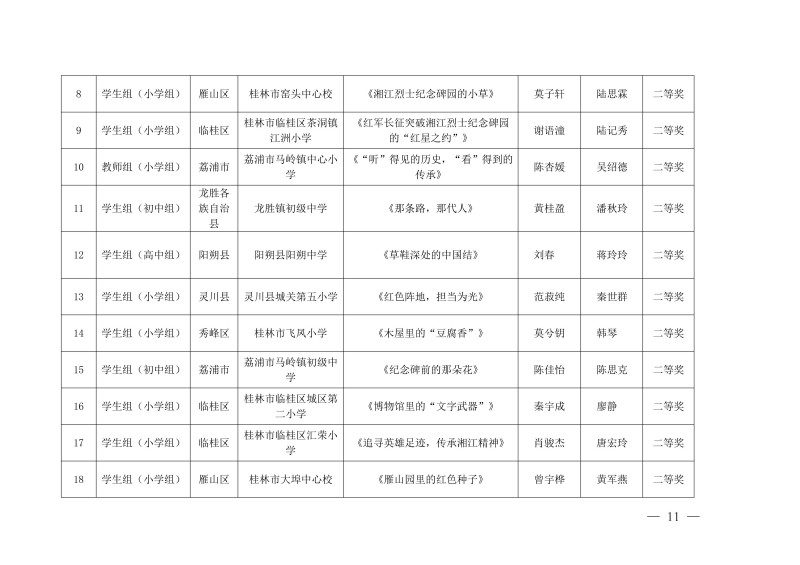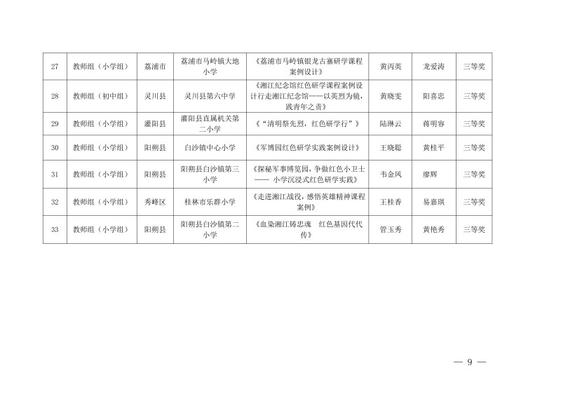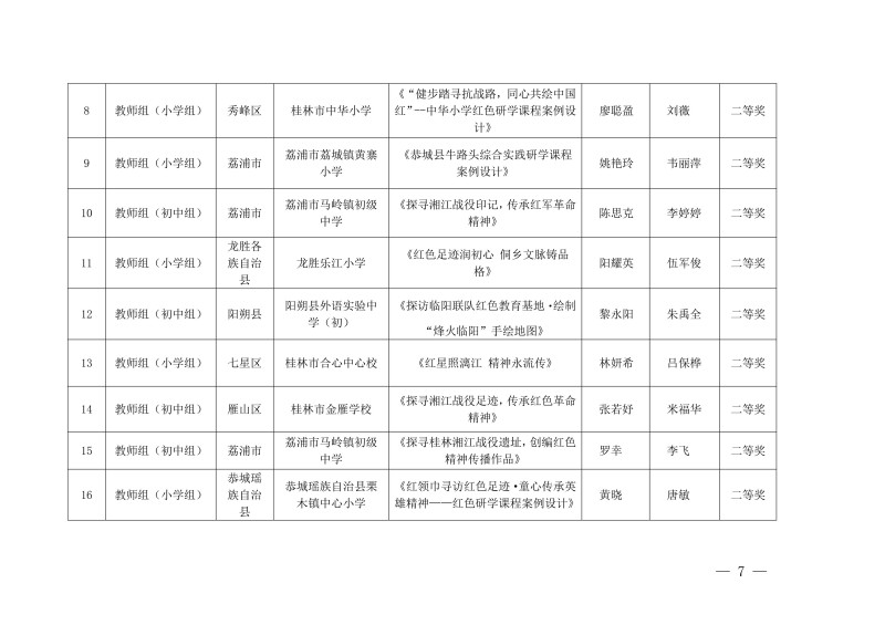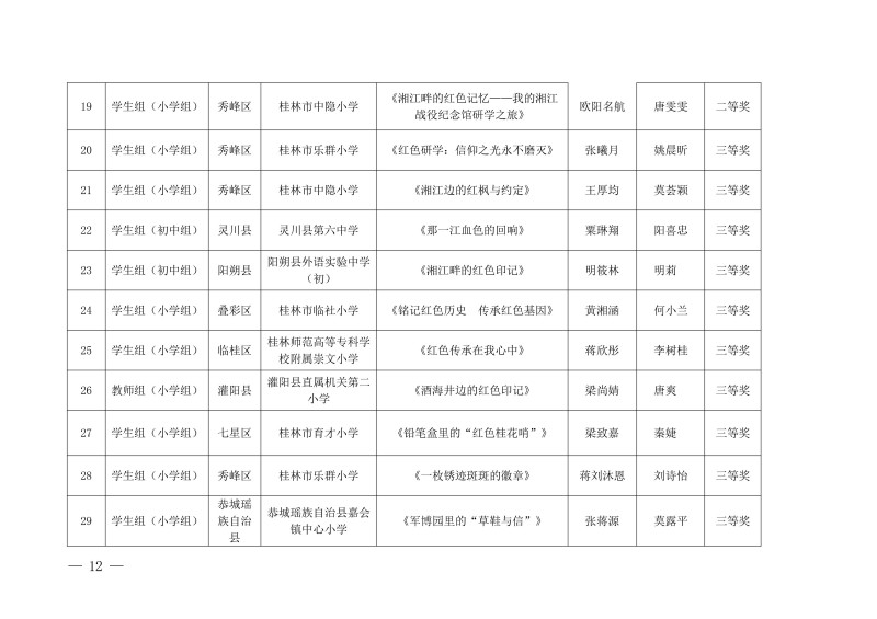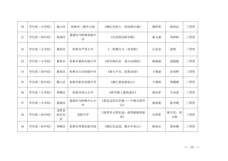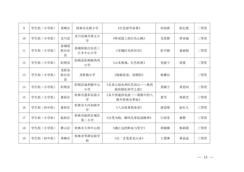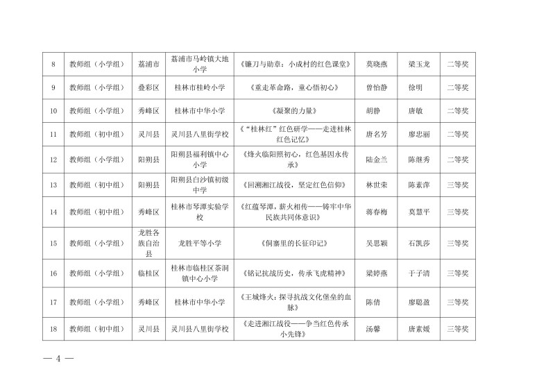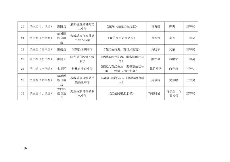 市教综合实践〔2026〕1号桂林市教育局关于公布中小学生“桂林红” 红色研学实践思政教育活动评选结果的通知