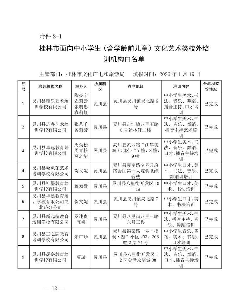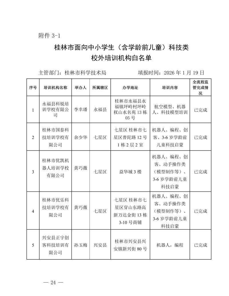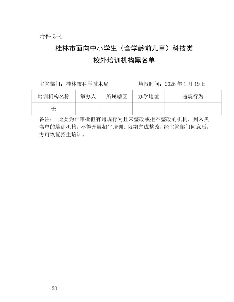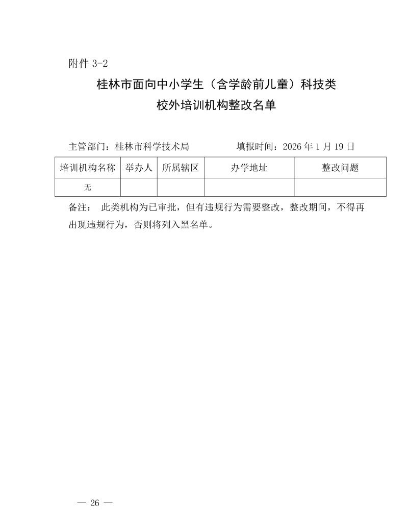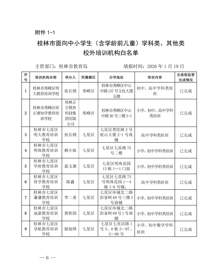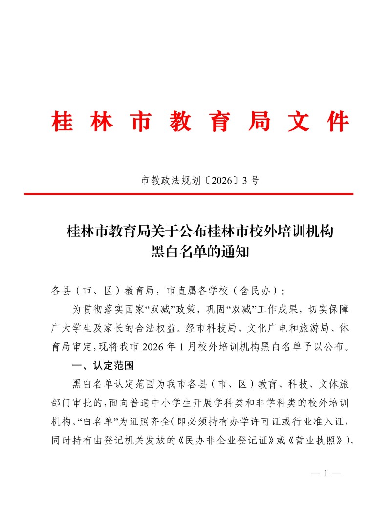 市教政法规划〔2026〕3号桂林市教育局关于公布桂林市校外培训机构黑白名单的通知