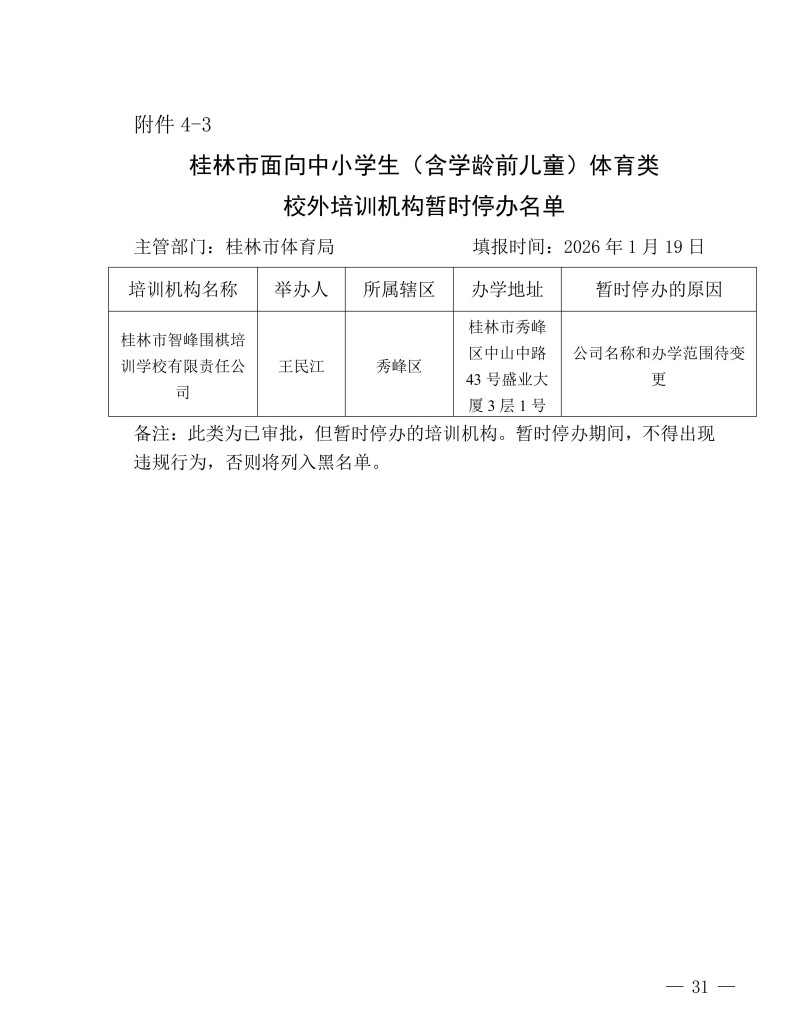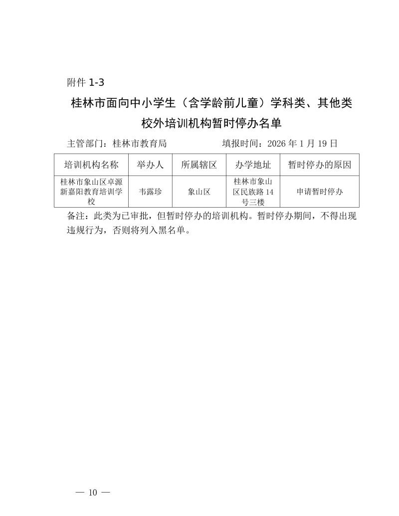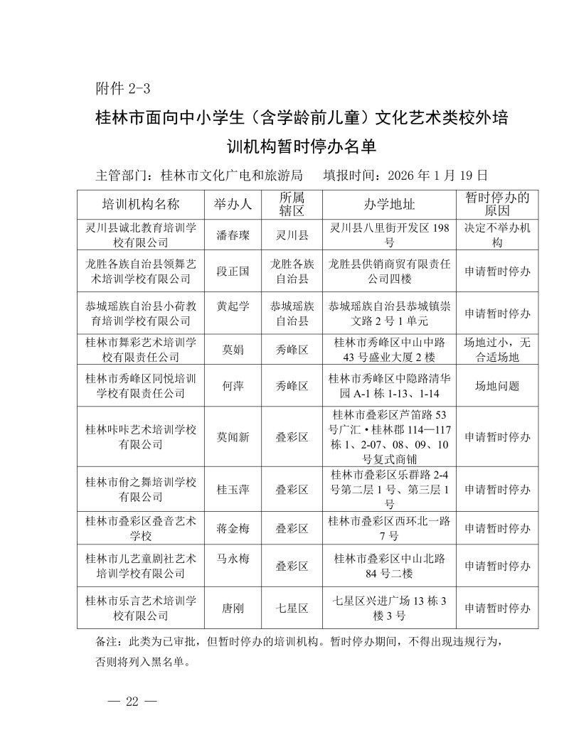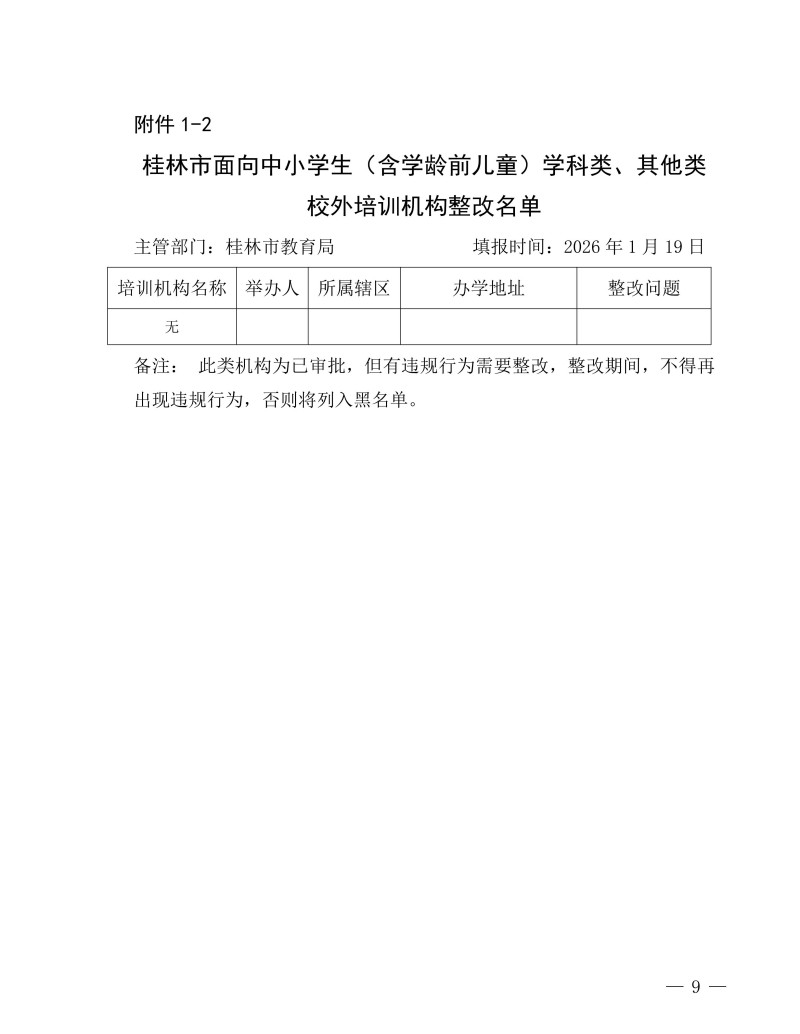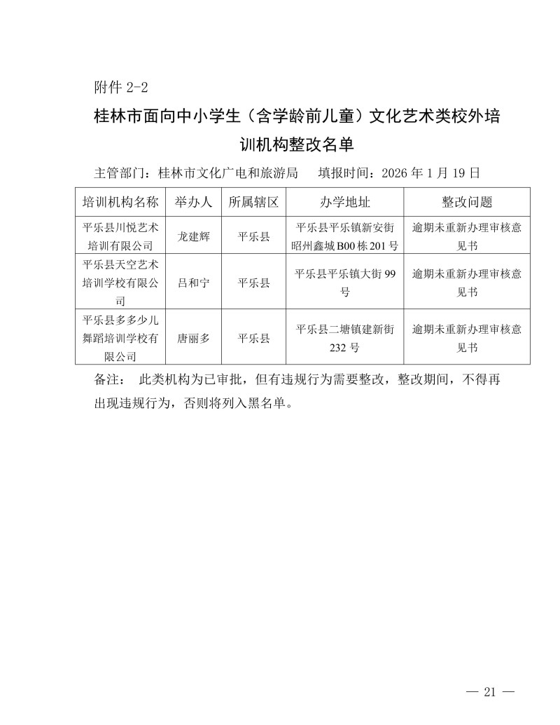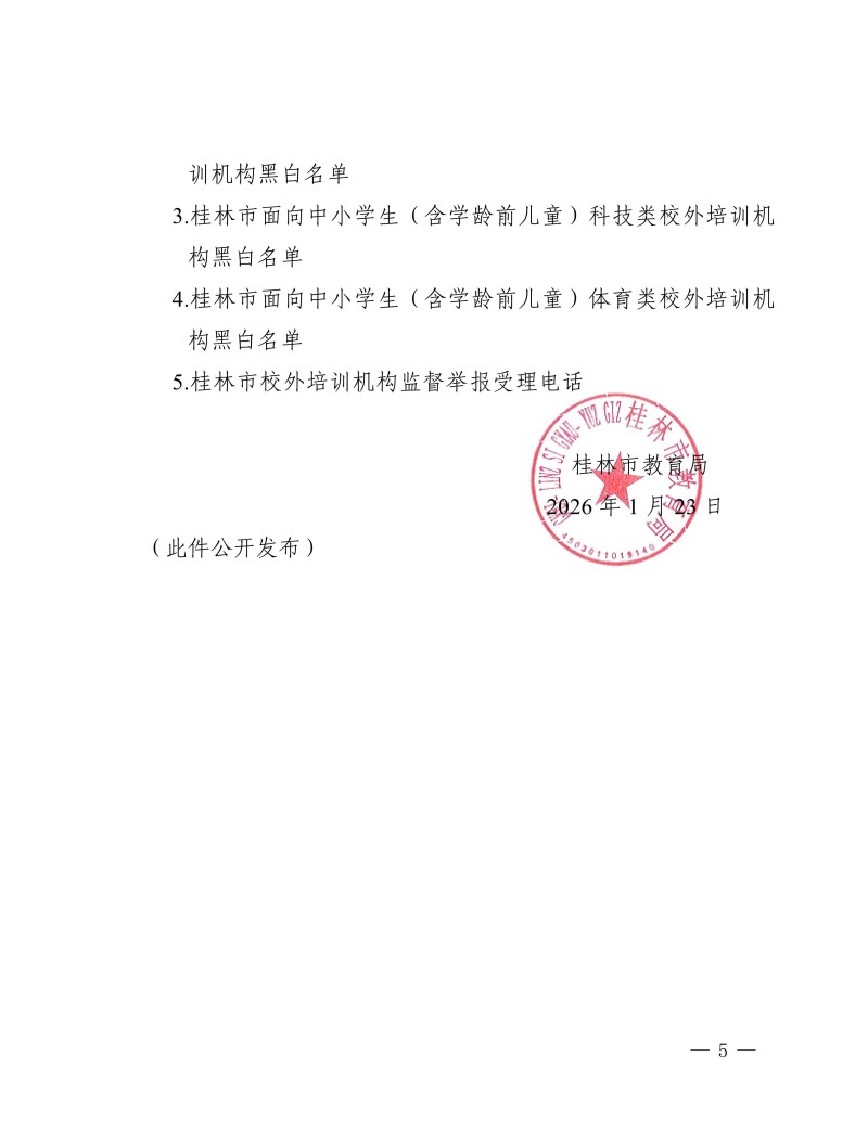 市教政法规划〔2026〕3号桂林市教育局关于公布桂林市校外培训机构黑白名单的通知