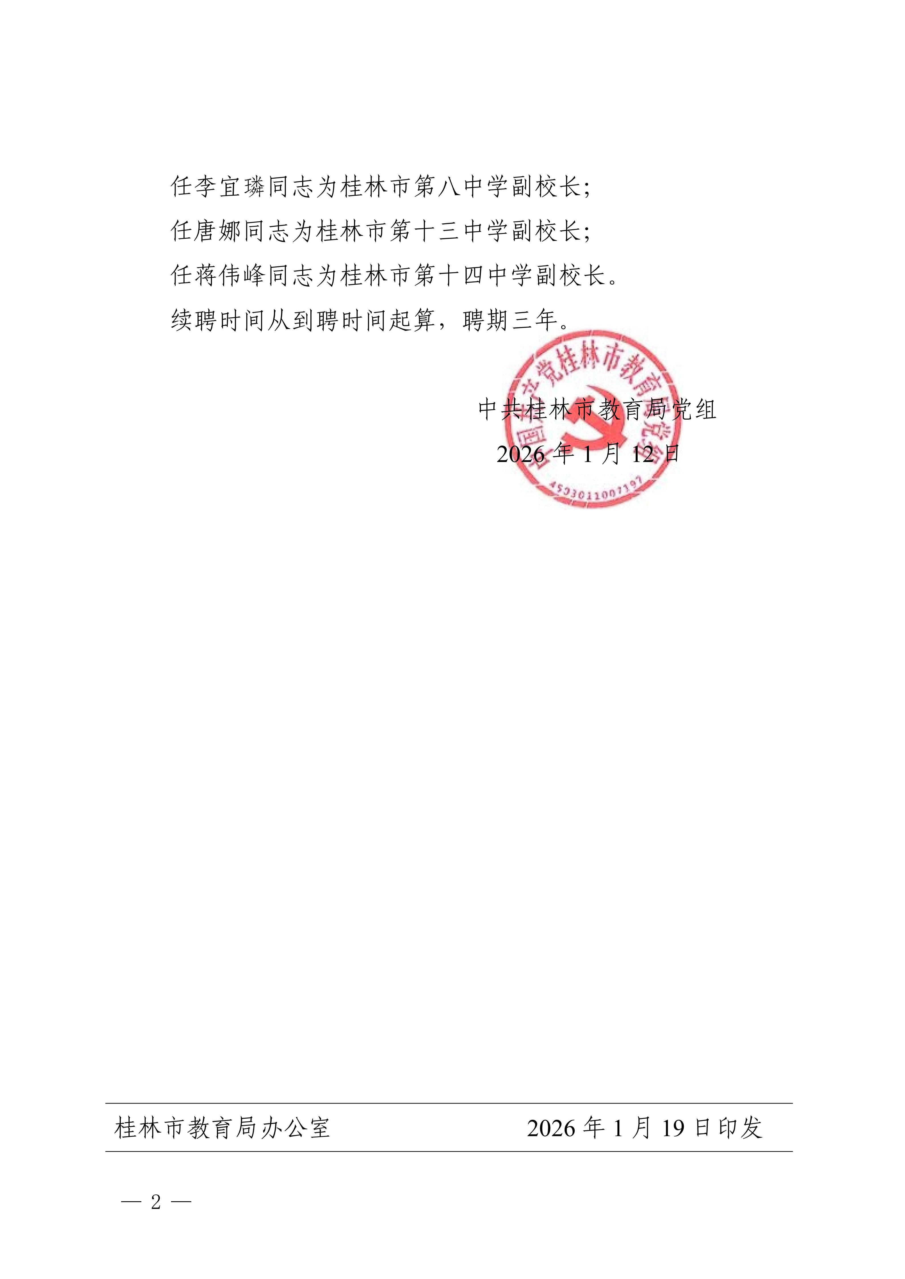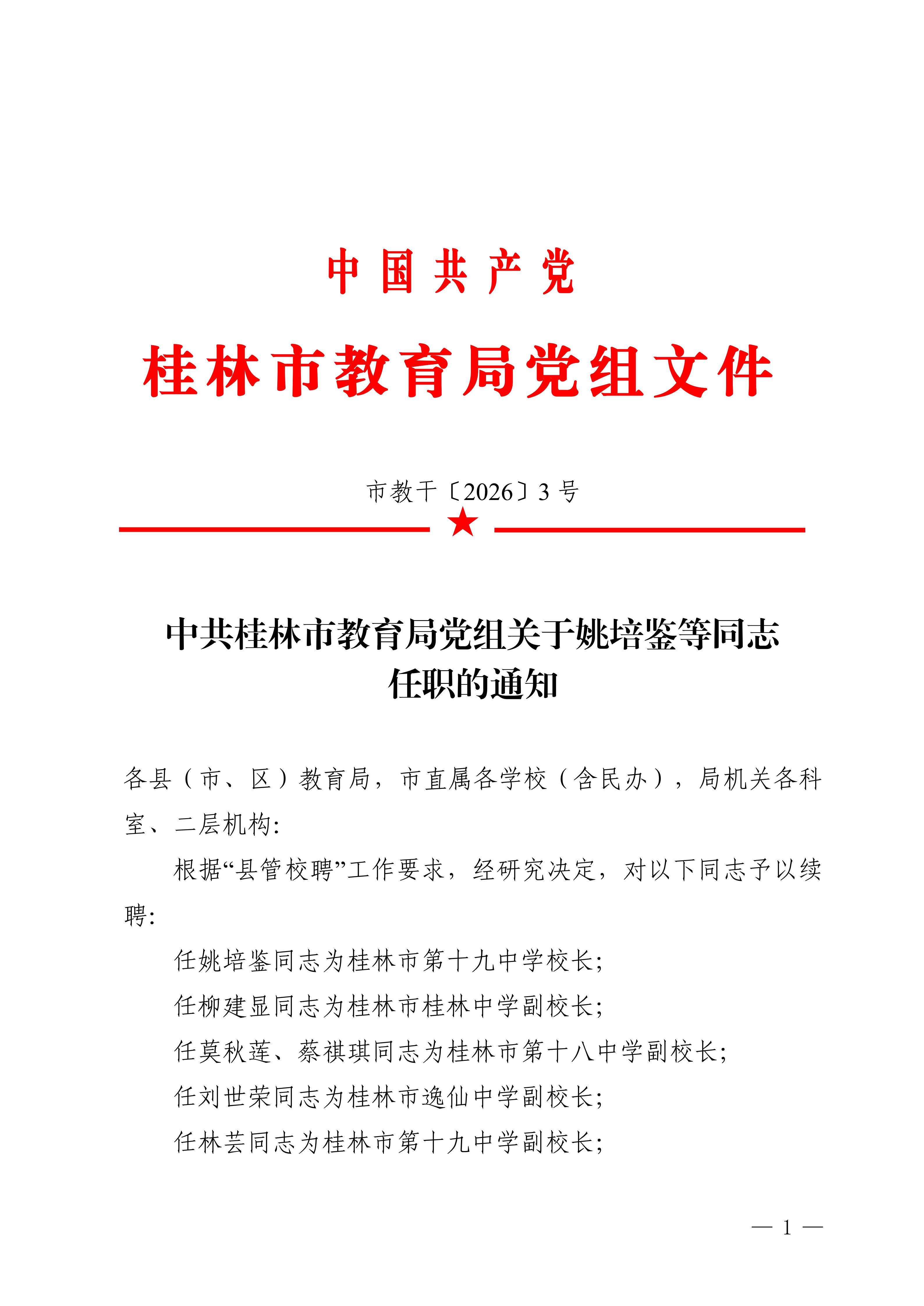 市教干〔2026〕3号中共桂林市教育局党组关于姚培鉴等同志任职的通知