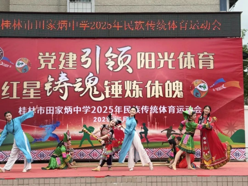 桂林市田家炳中学以“广西三月三”为纽带,策划“党建引领阳光体育,红星铸魂锤炼体魄”民族传统体育运动会。活动融入红色文化元素,通过竞技与体验,强化师生对民族团结的认知,助力“山水润心,红星铸魂”基于桂林本土资源的“三维共生”心育模式实践。