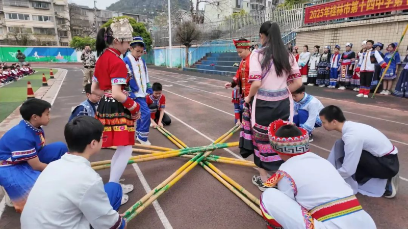 桂林市第十四中学举办“山水桂林同欢歌,民族团结共奋进”春季民族运动会及民族百家宴活动。师生通过文化展演、美食品鉴等环节,深化对广西民族传统的理解,激发对家乡与民族文化的热爱。