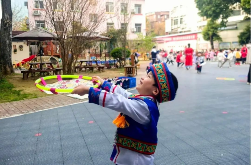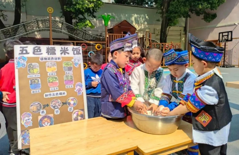 桂林市桂西幼儿园通过节日习俗、艺术活动等形式,开展“民族文化薪火传,和美唱响三月三”主题系列活动。幼儿在趣味体验中接触传统文化,初步建立对民族文化的认同感,进一步铸牢中华民族共同体意识。