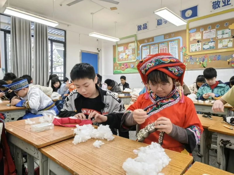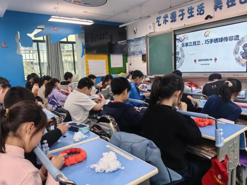桂林市乐群小学将劳动教育与非遗文化传承结合,组织学生参与绣球制作。通过剪裁、缝制等实践环节,学生不仅掌握传统手工艺技能,更体会到劳动的价值与民族文化的魅力。