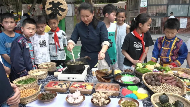 桂林市民主小学以学山歌、跳竹竿舞、制五色糯米饭等活动为核心,设计“潮涌三月三”主题体验。学生在互动中了解广西民族文化,展现各族人民的智慧与团结。