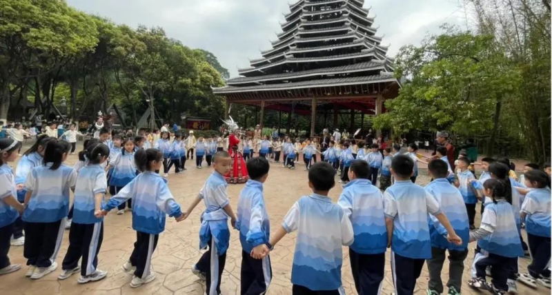 桂林市中隐小学组织学生赴刘三姐大观园研学,通过互动游戏与实地探访,感受民族文化魅力,在实践体验中播撒热爱传统文化的种子。