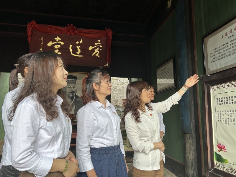 党员教师在讲解人员的引领下参观了爱莲家祠、爱莲堂、古民居、金钱井、字厨塔、护龙河等古建筑遗迹,感受了周氏家族廉洁高尚的品质及周氏后人规行矩步、洁身自爱的精神,了解了“出淤泥而不染、濯清涟而不妖”的“爱莲”文化在“百年清官村”薪火相传的历史渊源,让党员教师潜移默化地受到“爱莲”文化的熏陶。