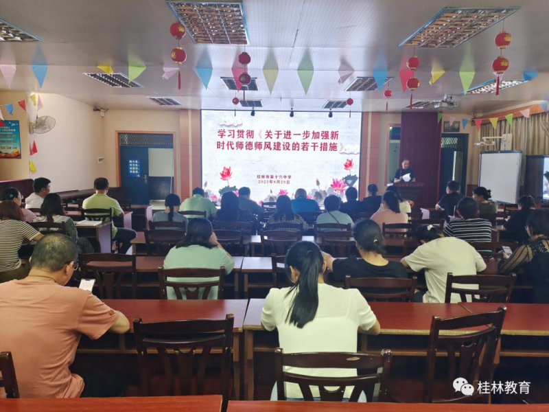 ▲桂林市第十六中学开展师风师德专题培训