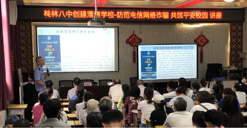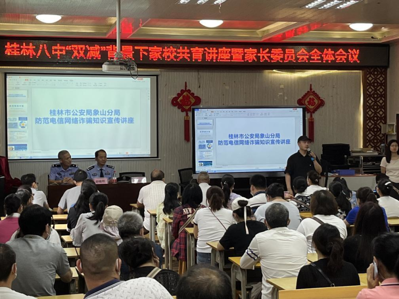 为进一步帮助广大家长提高反电信网络新型违法犯罪的意识和能力,保护广大家长的财产安全,建设平安无诈校园;同时,加强家校联系,让家长们深入了解孩子的学习和生活环境,倾听心声,关注教育,从而更好地配合学校,共同促进孩子健康成长。5月31日下午,桂林市第八中学举行了“双减”背景下家校共育讲座暨家长委员会全体会议。