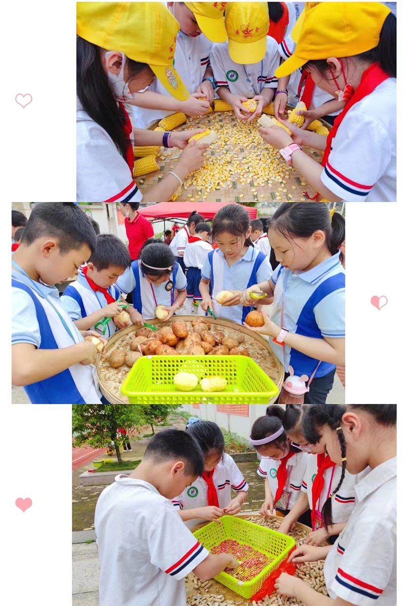 其他年级的小选手们争分夺秒剥花生剥玉米刨土豆,每一个项目都来源于日常的农家劳作,这些“接地气”的比赛项目,规则简单、充满趣味,激发了孩子们的参与热情,现场人声鼎沸,加油鼓劲声此起彼伏,操场上洋溢着快乐的气息。