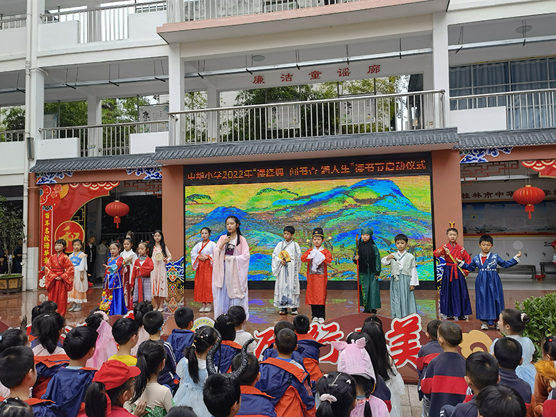 书籍记录人类文明,读好书能洗涤心灵,阅读能陪伴成长。为丰富校园文化生活,推进书香校园的创建活动,4月21日下午,桂林市秀峰区中华小学隆重举行了“读经典闻书香 润人生”的读书节活动启动仪式。全校师生参加了仪式。