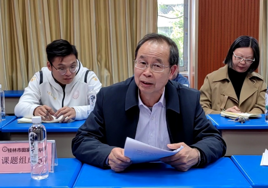 最后,课题组成员桂林市第十九中学党委书记甘培荣怀着对田中的情怀对本课题做了分享。甘培荣书记希望大家在学校领导支持下,课题负责人的带领下,在全组成员的合作下,能切实通过“协同机制”落实“减负增效”,能够对研究成果进行提炼,让成果更有价值,更有水平。