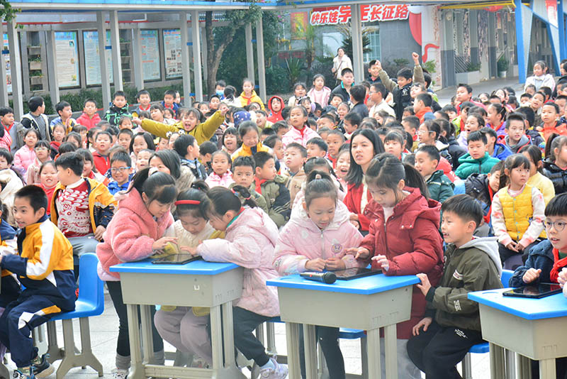 本次活动是对学校每周一次“乐乐群群诵读古诗词”活动成效的检阅。活动筹备阶段,学校精心策划,制定了详细的比赛规则与流程,确定了比赛题库,内容涵盖2024年度向学生推送的唐诗、宋词、元曲和近现代经典诗词,多层次考查学生对诗词的积累、理解与运用能力。低年段着重考查古诗读音、诗人、朝代以及诗句背诵;中高年级在此基础上,增加对古诗创作背景、诗词字意理解、情感以及组诗比较等方面的考查,让同学们全方位地展现对诗词的理解与感悟。