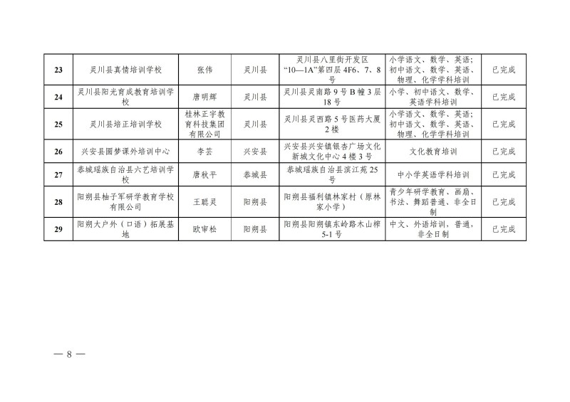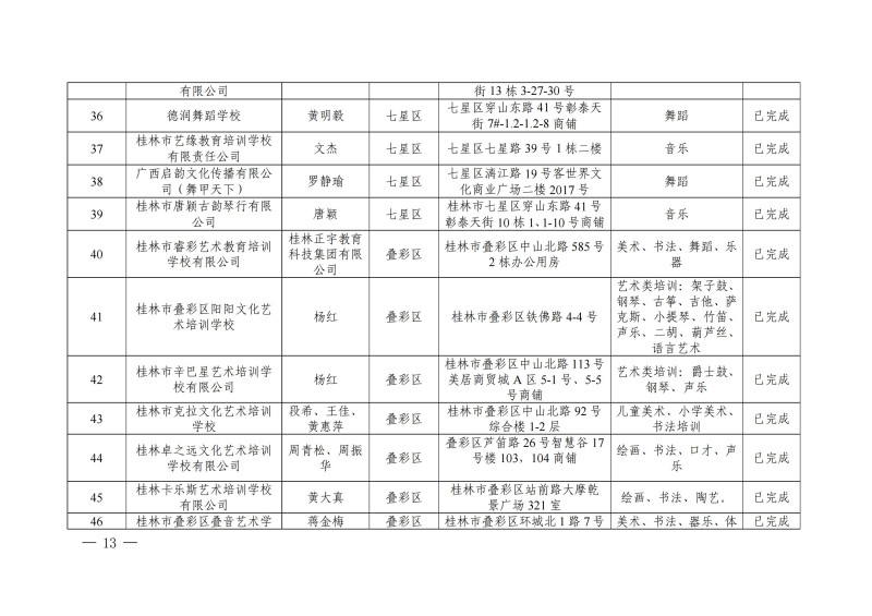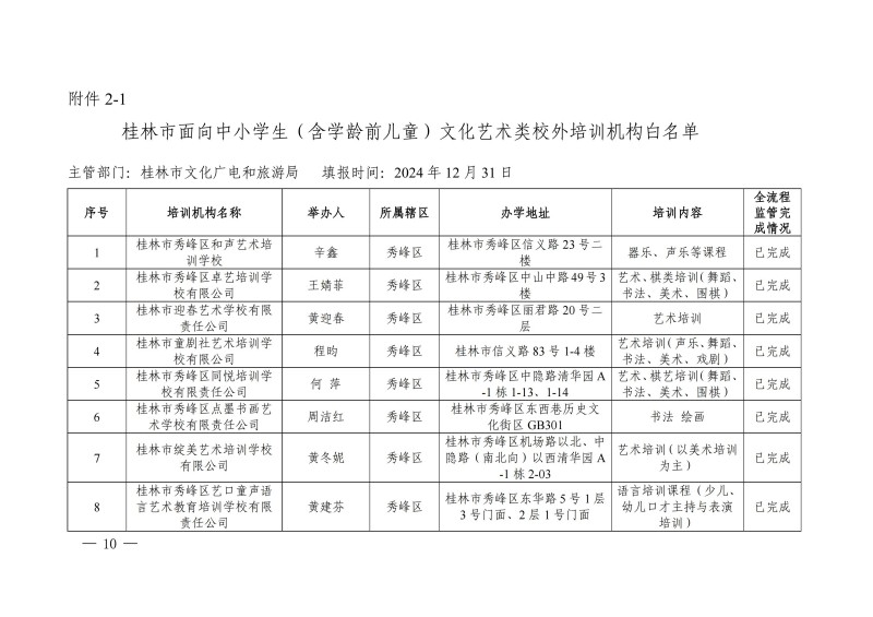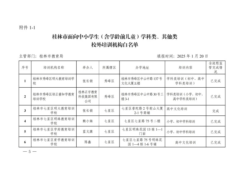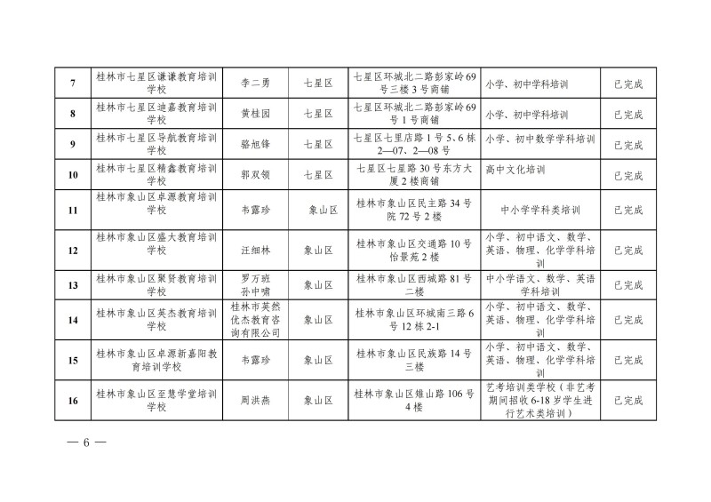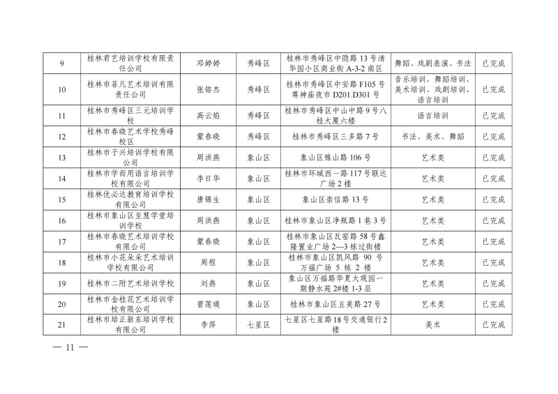 桂林市“双减”工作领导小组办公室关于公布桂林市校外培训机构黑白名单的通知