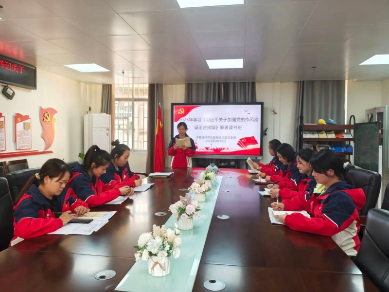 幼儿园党支部书记卿薇带头上党课,围绕“八项规定学什么、怎么干”展开讲解,明确学习要求、党员责任与监督机制,要求全体党员教师自觉抵制不良风气,要立足岗位积极发挥模范带头作用。幼儿园党总支举办专题读书班,党支部委员领学《习近平关于加强党的作风建设论述摘编》,并结合幼儿园师德师风建设工作展开研讨,通过教职工例会常态化学习中央八项规定及其实施细则、《习近平文化思想学习纲要》等重要内容,夯实作风建设思想根基。