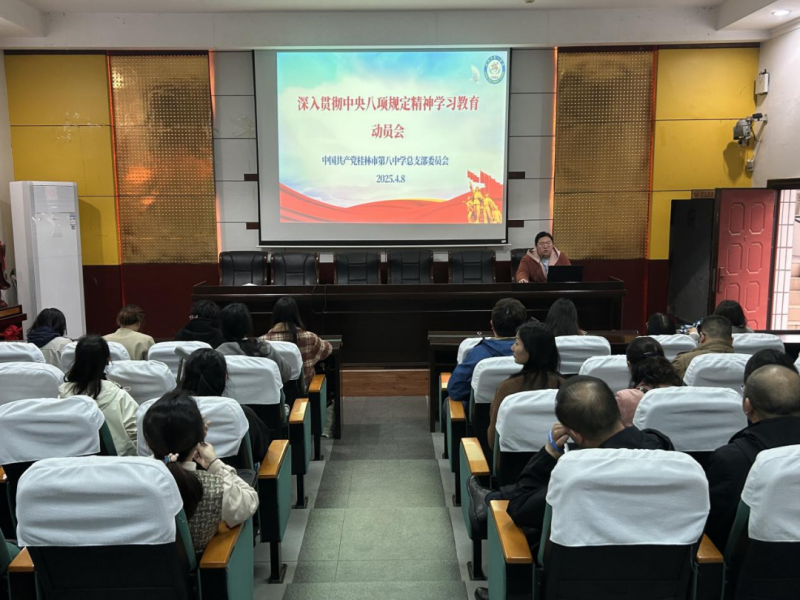 桂林市第八中学党总支高度重视深入贯彻中央八项规定精神学习教育,迅速发动部署,坚持“三不腐”一体推进模式。学校党总支召开专题会议,充分发挥“关键少数”的示范引领作用,党员教育深入学习中央八项规定及其实施细则精神,明晰中央八项规定是推进全面从严治党的重要举措,也是提升学校治理能力和教育质量的重要保障。学校党总支书记张学彬希望全体党员教师牢记党纪党规,坚持依法治校、廉洁从教、严谨治学,始终保持共产党人的政治本色。学校各党支部和党小组通过集中学习、专题研讨、个人自学等多种形式深入学习,党员教师纷纷表示,进一步增强了对中央八项规定精神的理解和认同,将以更加饱满的精神状态投入教育教学工作。下一步,桂林市第八中学将坚持问题导向,把学习成果转化为工作实效,巩固师德师风建设、校园餐饮、招生管理、教材征订、校服管理等领域的廉洁风险防控,以更高站位、更严标准、更实举措深入贯彻落实中央八项规定,为办好人民满意的教育提供坚强纪律保障。