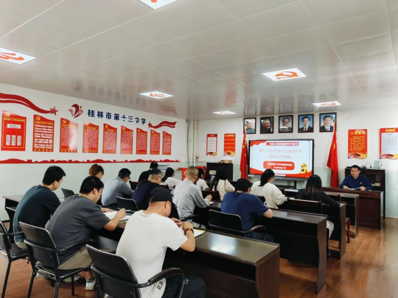 桂林市第十三中学紧紧围绕深入贯彻中央八项规定精神学习教育,迅速部署、全面推进相关工作。学校党总支召开动员大会,党总支书记李洪带领全体党员教育深入学习中央八项规定精神内涵,并就学习教育提出具体要求和安排,要求党员教师聚焦重点内容,采取丰富多样的学习形式,结合师德师风建设等实际开展研讨活动,切实增强学习实效。随后,各党员教师以“三会一课”为抓手,把学习《习近平关于加强党的作风建设论述摘编》和中央八项规定及其实施细则精神作为重点,通过专题学习和研讨交流深入领会精神实质,结合工作实际认真查摆问题,切实改进工作作风。下一步,桂林市第十三中学将开展警示教育、集中整治等系列活动,聚焦师生关切的重点问题,化解实际困难,进一步提升办学质量,营造务实清正的校园氛围。