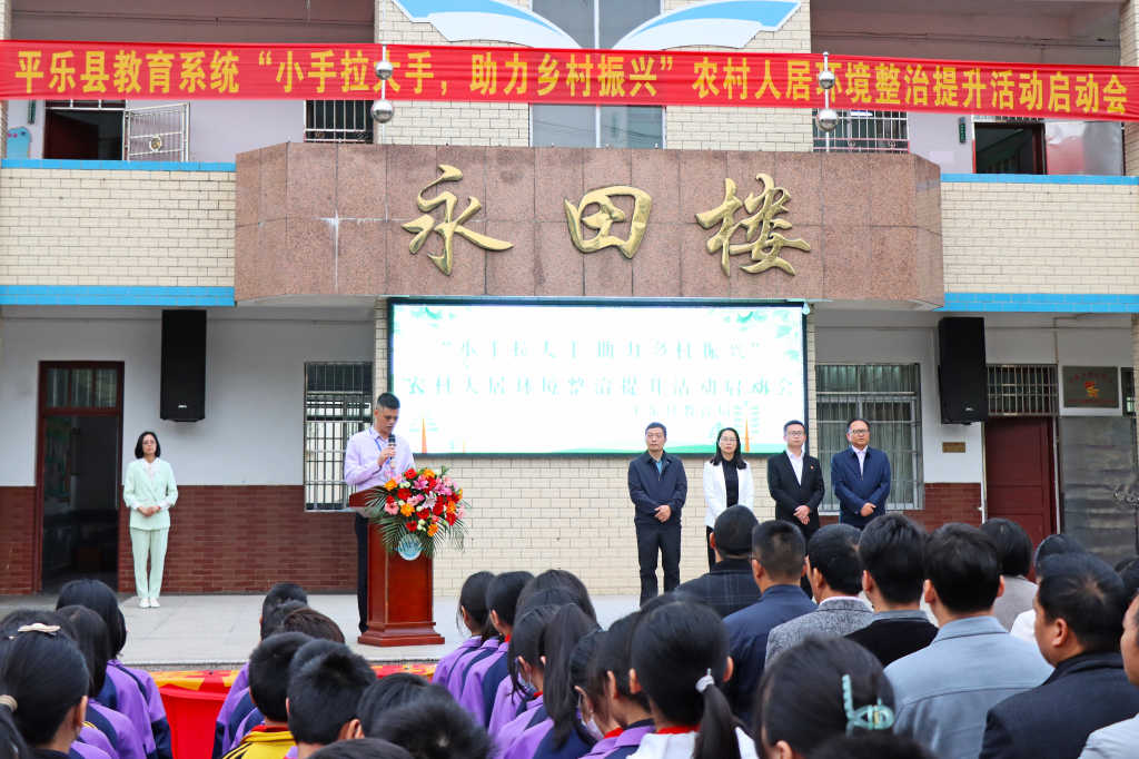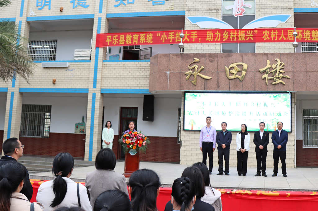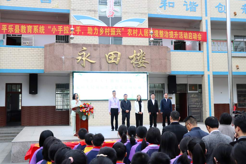 为进一步巩固拓展教育脱贫攻坚成果和全面促进乡村教育振兴,助力平乐县乡村振兴,3月23日,平乐县教育系统“小手拉大手 助力乡村振兴”农村人居环境整治提升活动启动会在平乐县二塘镇中心校举行。平乐县教育局党组成员黄辞、二塘镇党委副书记谢万富以及平乐县教育局相关股室负责人、各直属校(园)分管领导、二塘中心小学全体师生等共1570余人参加当天的活动。