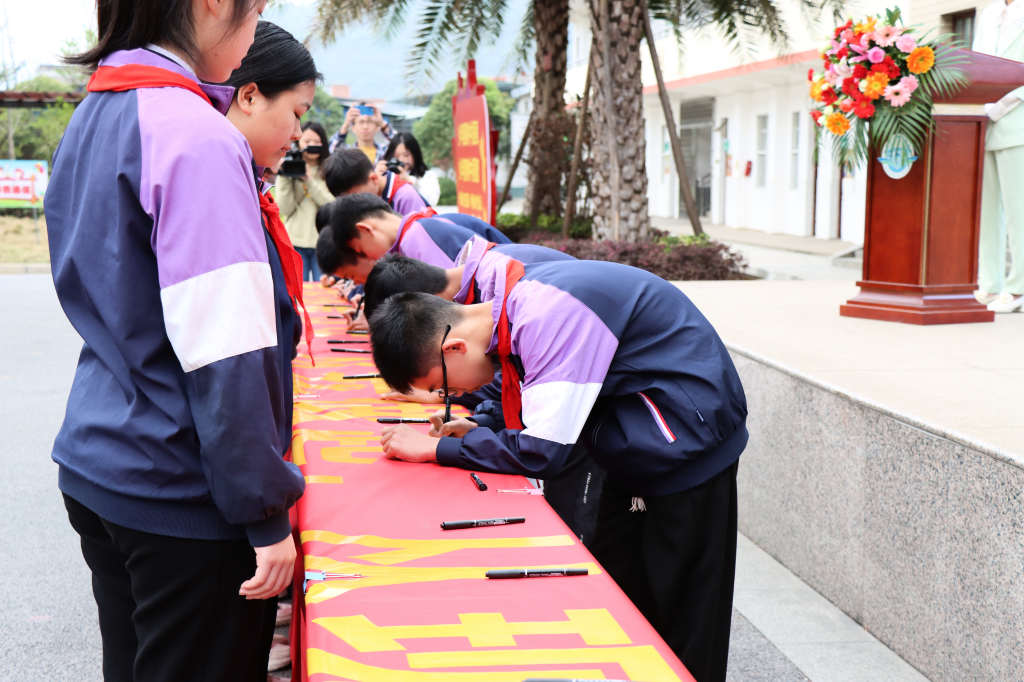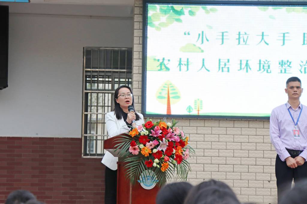 学生代表向全县同学发出倡议,从我做起、从现在做起,争做文明学生,小手拉大手,一起共建美好家园,共同提升人居环境,为乡村振兴助力。